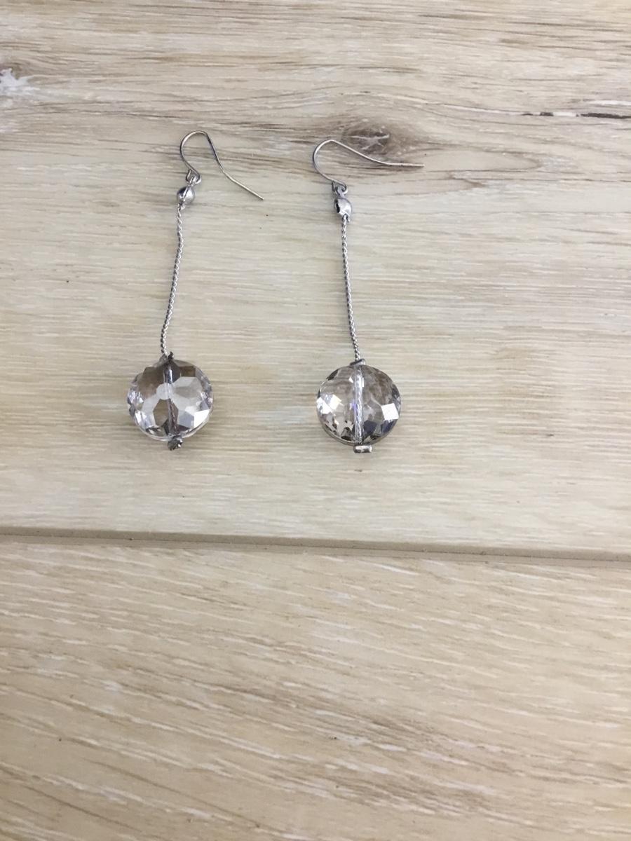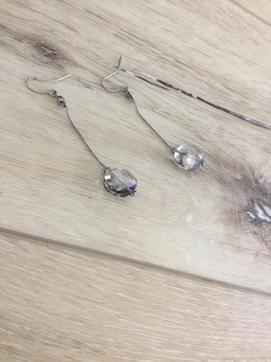 Beautiful, smoky quartz, crystal silver tone, drop dangle earrings