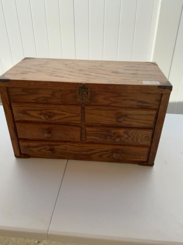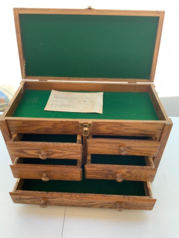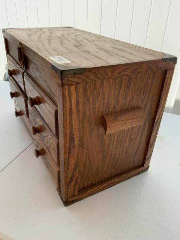 Beautiful solid oak wood tool chest with drawers Lot 2560