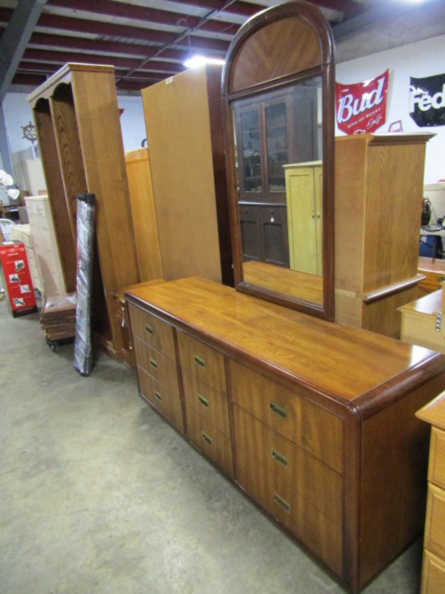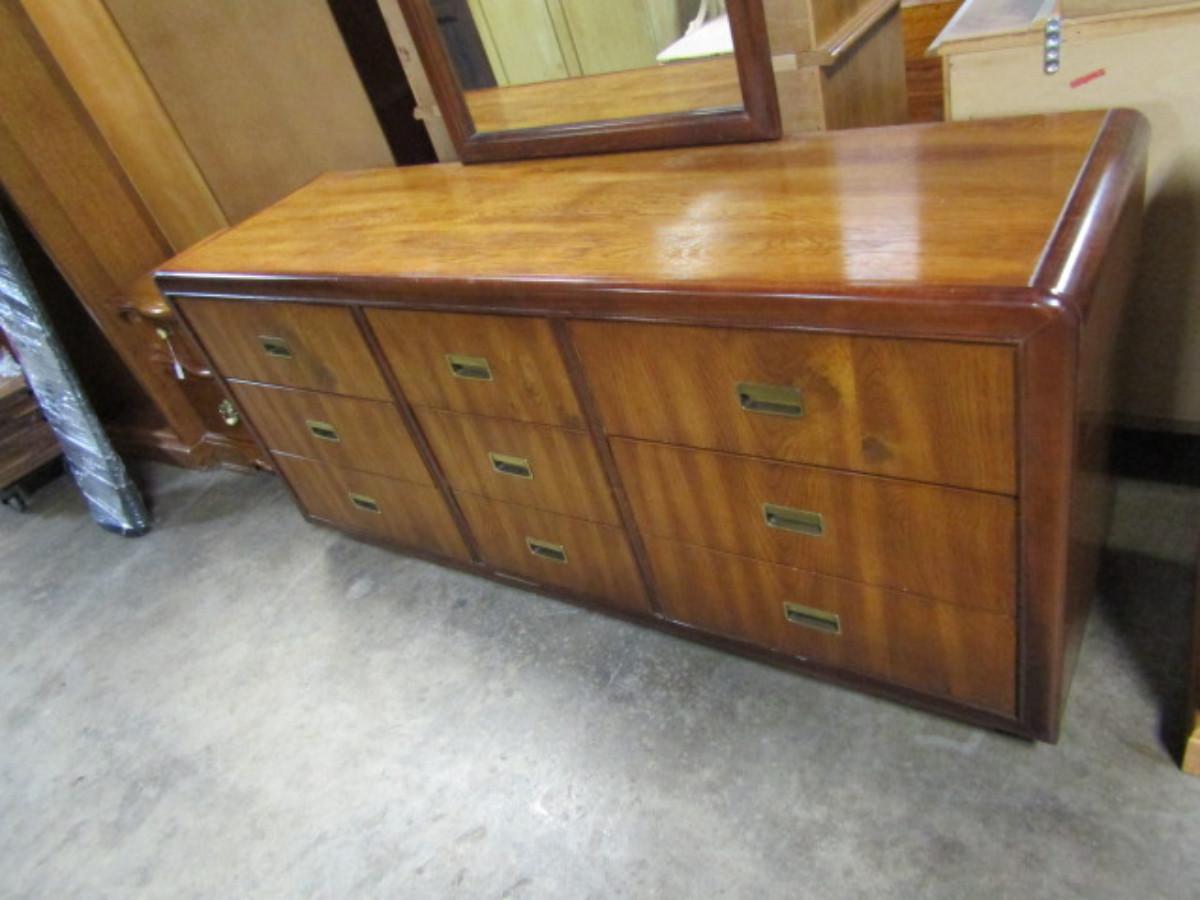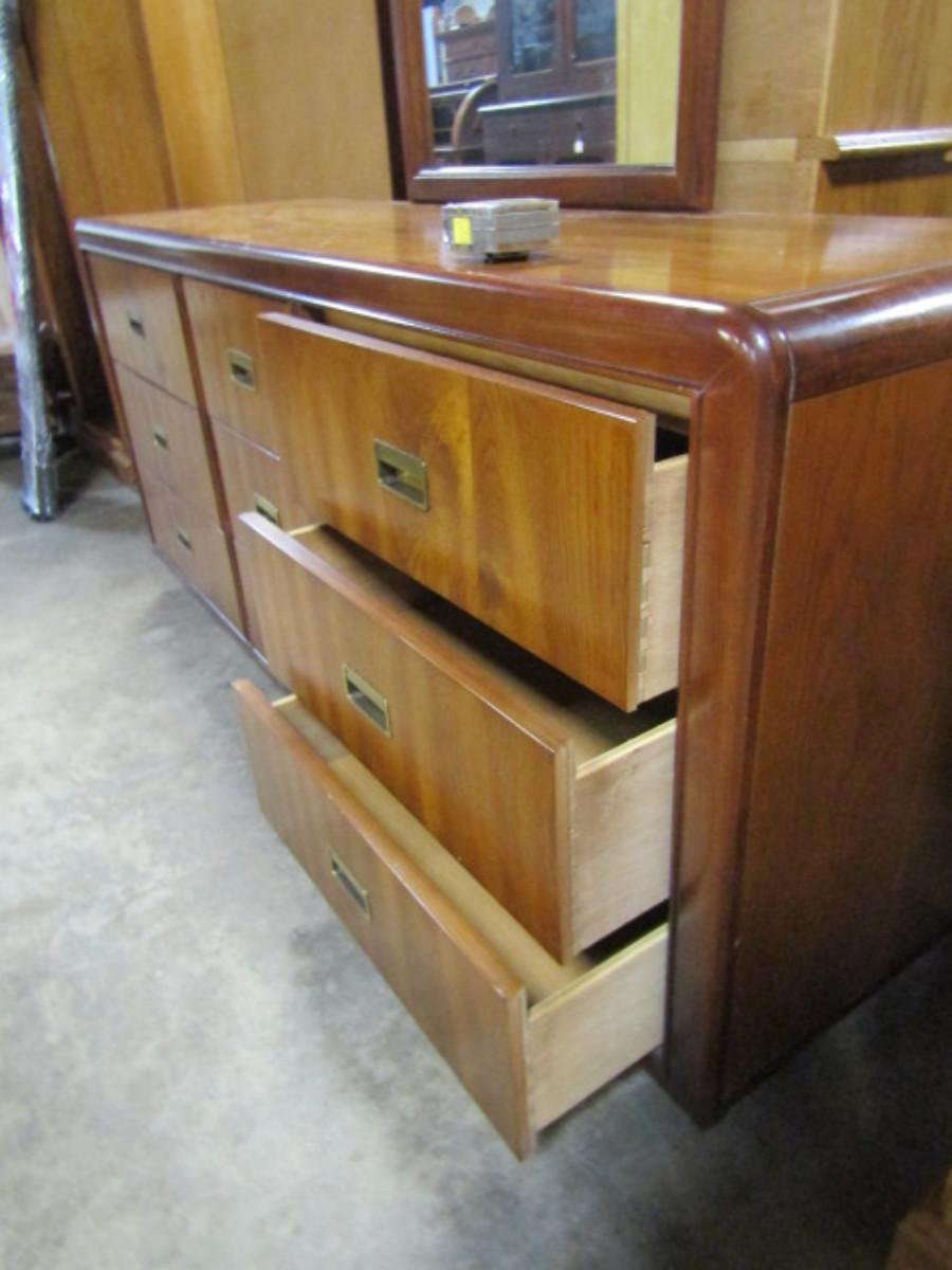 Beautiful, Solid Wood Deco Style Two Tone Stretch Dresser with Mirror Made by Bassett for 'The Hub'