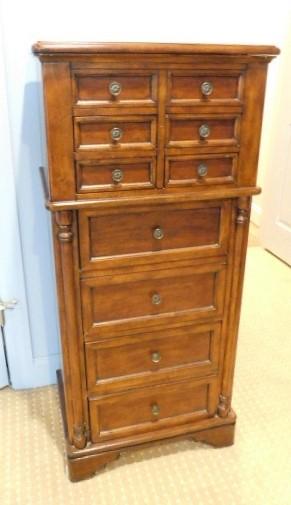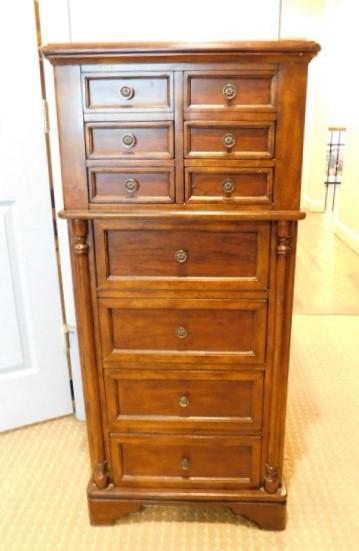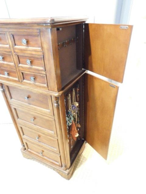 Beautiful Solid Wood Jewelry Tower with Mirror and Necklace Side Compartments 22"x15"x48"