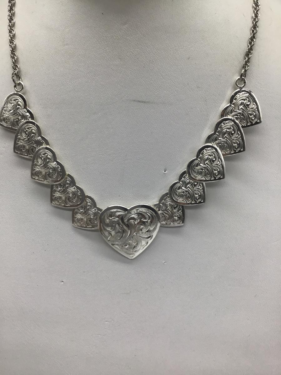 Beautiful Southwest Style Silver Tone HeartTrio Necklace