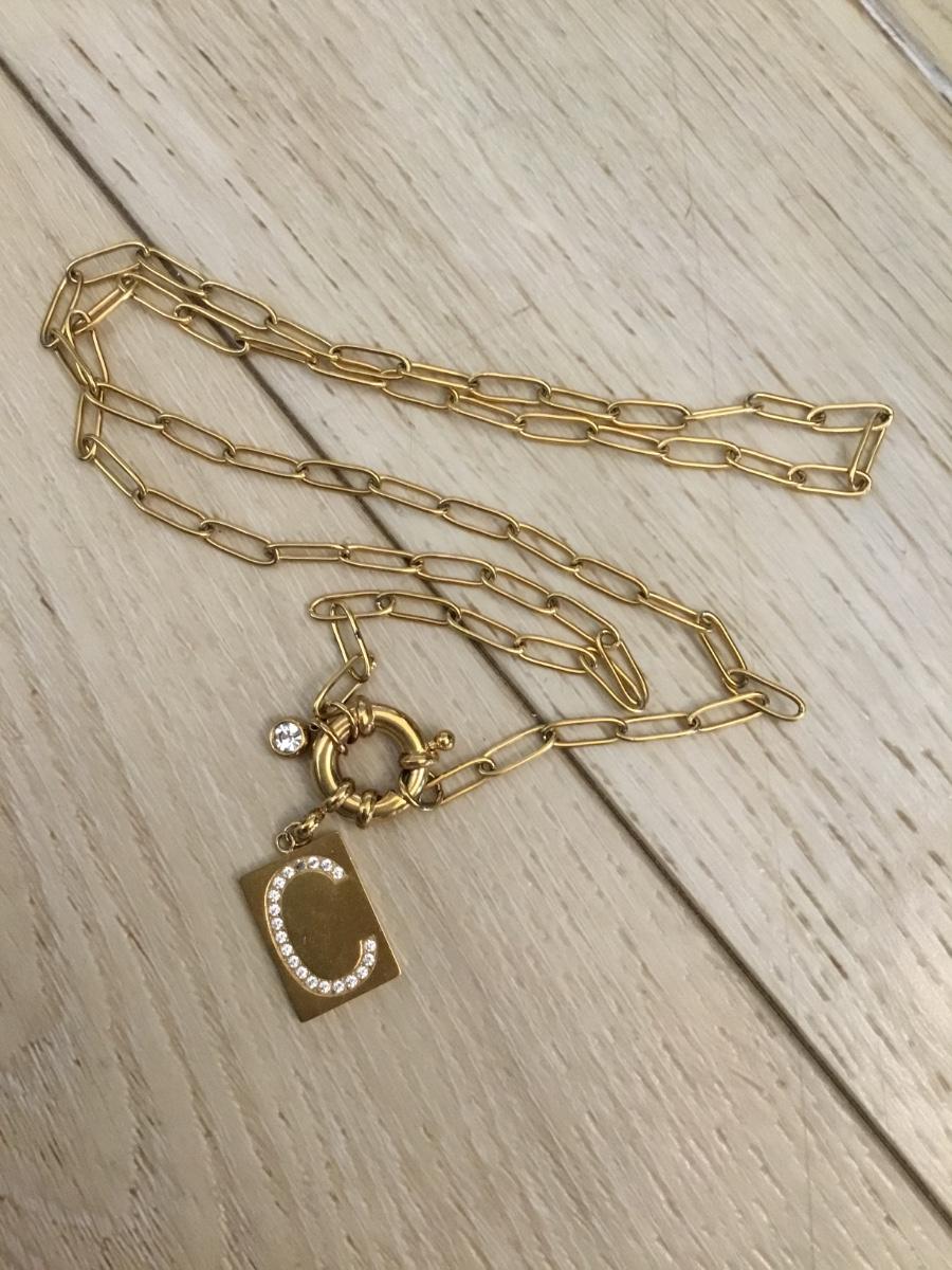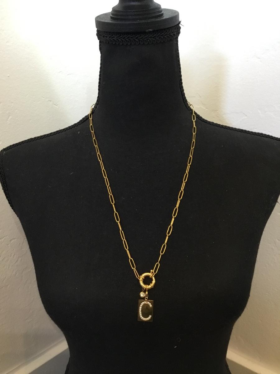 Beautiful stainless steel crystal rhinestone letter C toggle fashion necklace