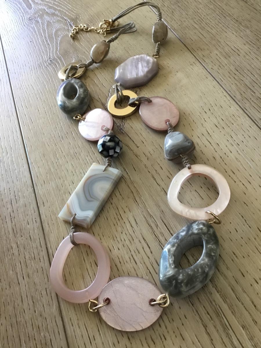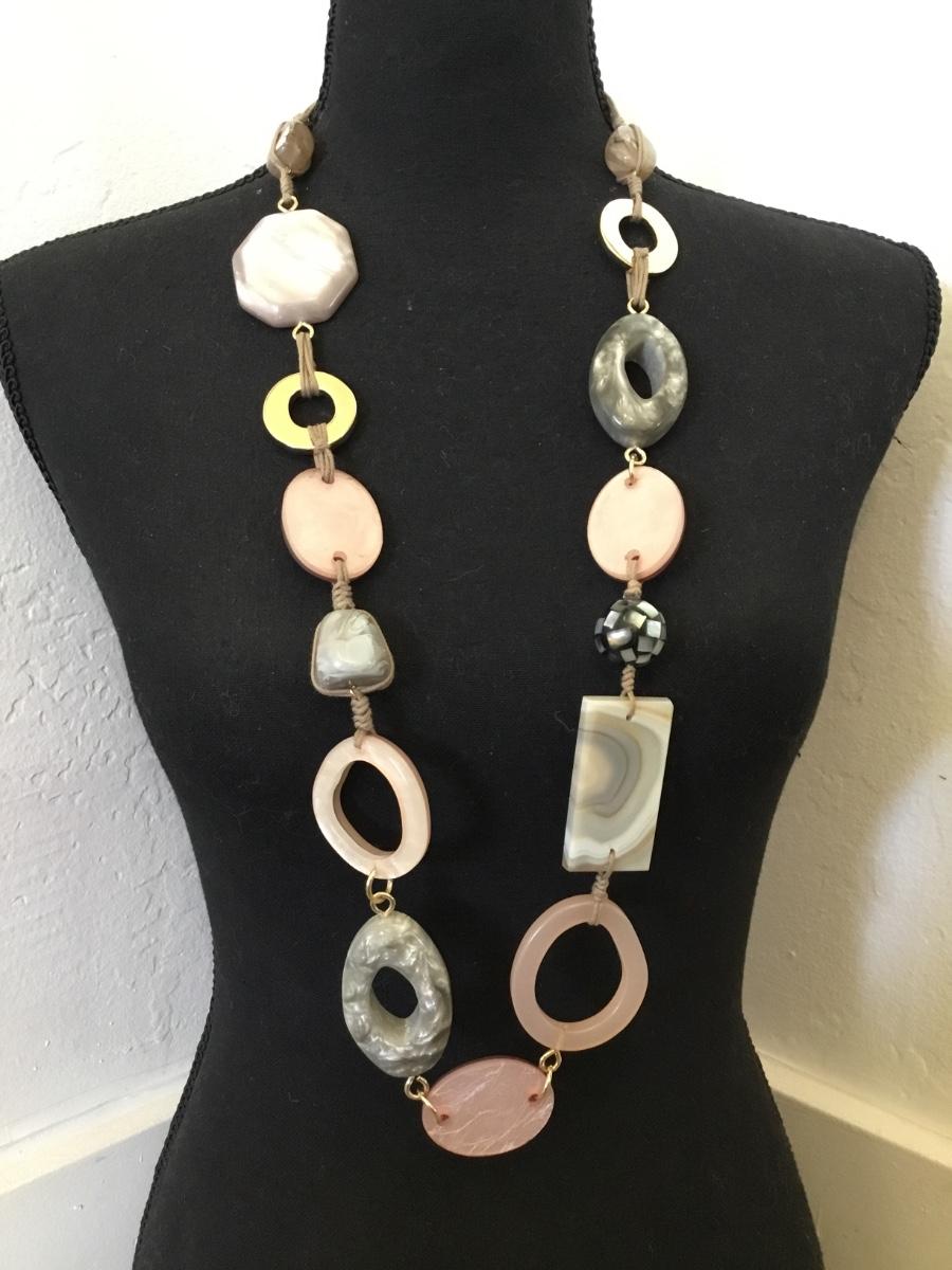 Beautiful stone and shell and acrylic. Beaded statement necklace. Very nice quality,