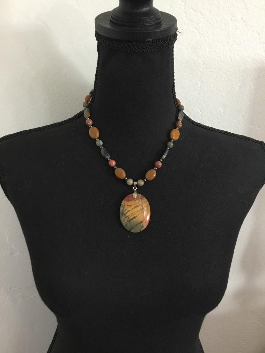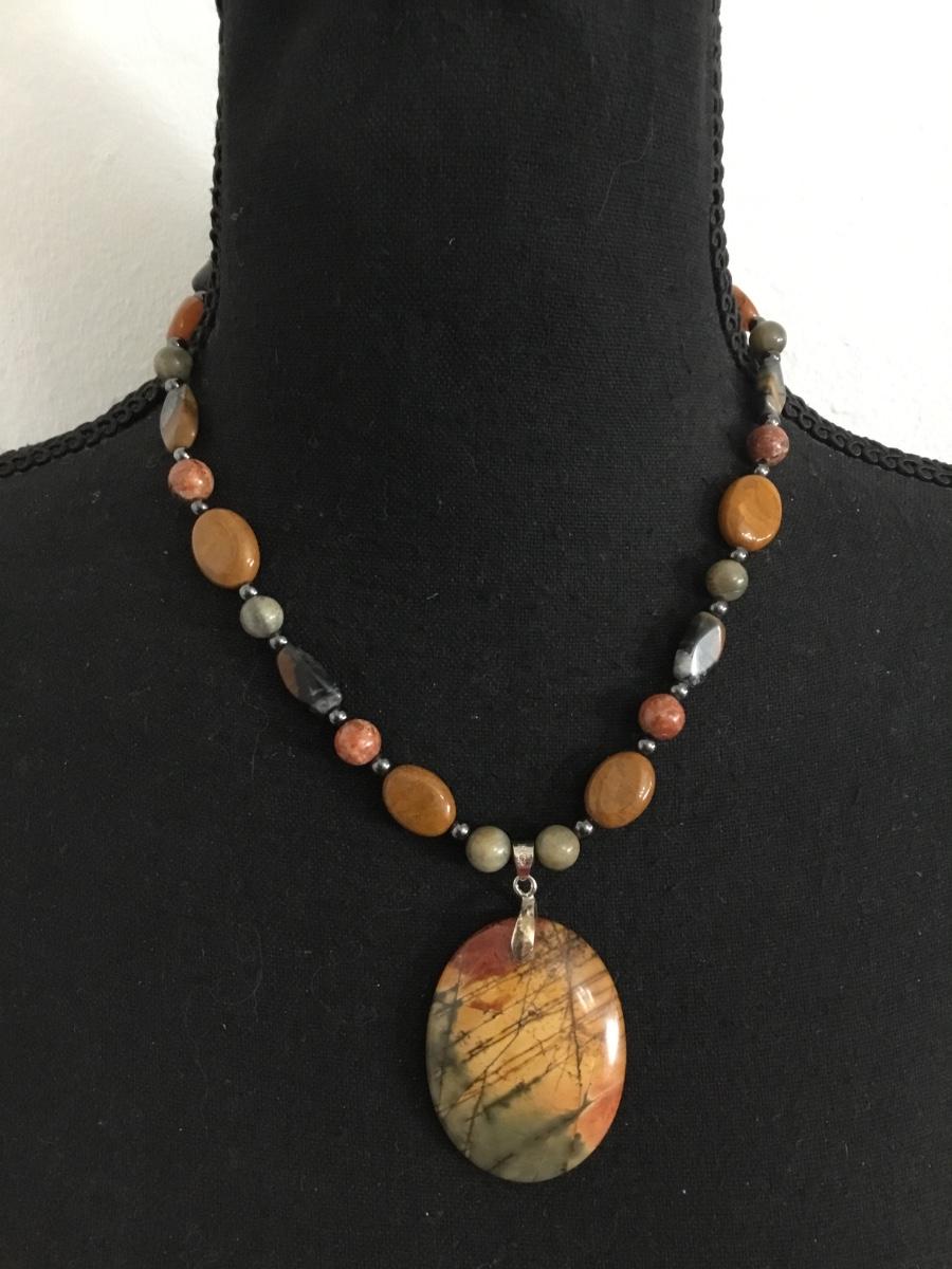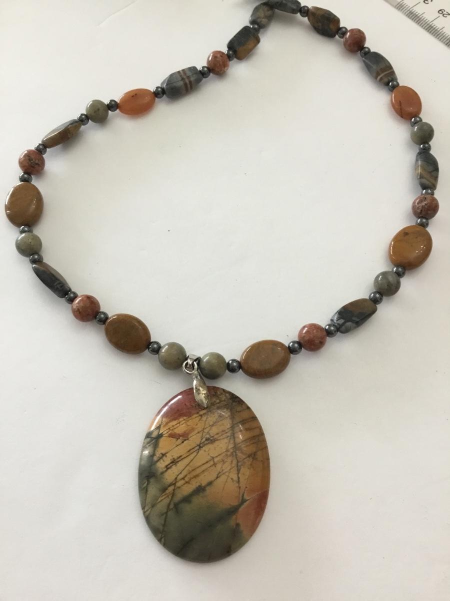 Beautiful stone bead, necklace and pendant vintage with barrel clasp very nice