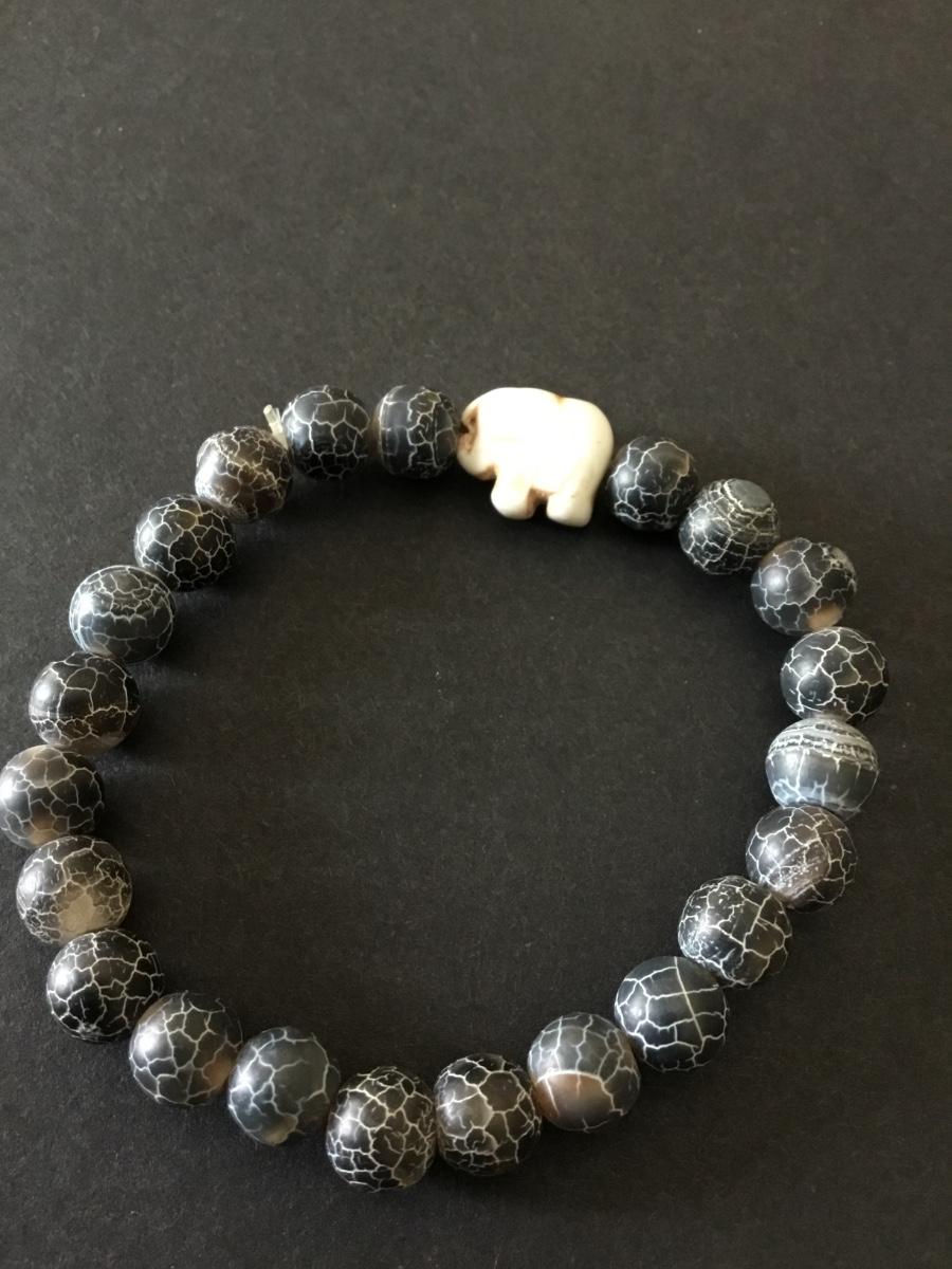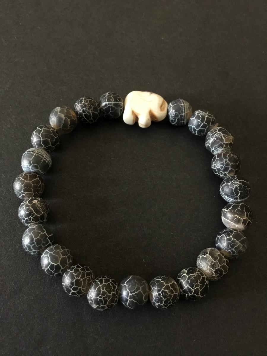 Beautiful stone bead stretch bracelet with cute elephant, carved stone bead
