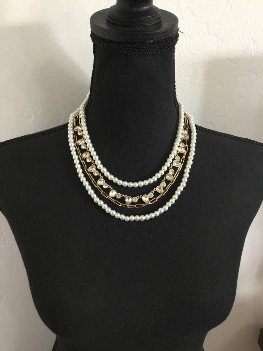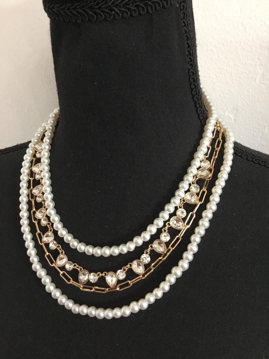 Beautiful super cute gold tone, faux pearl, layered , necklace