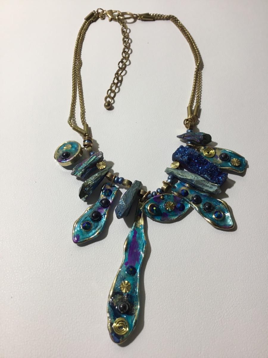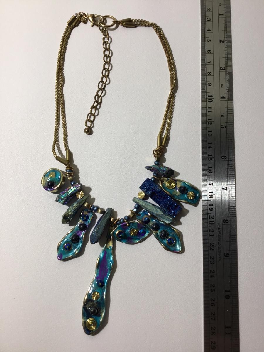 Beautiful T marked blue stone crystal type fashion statement necklace