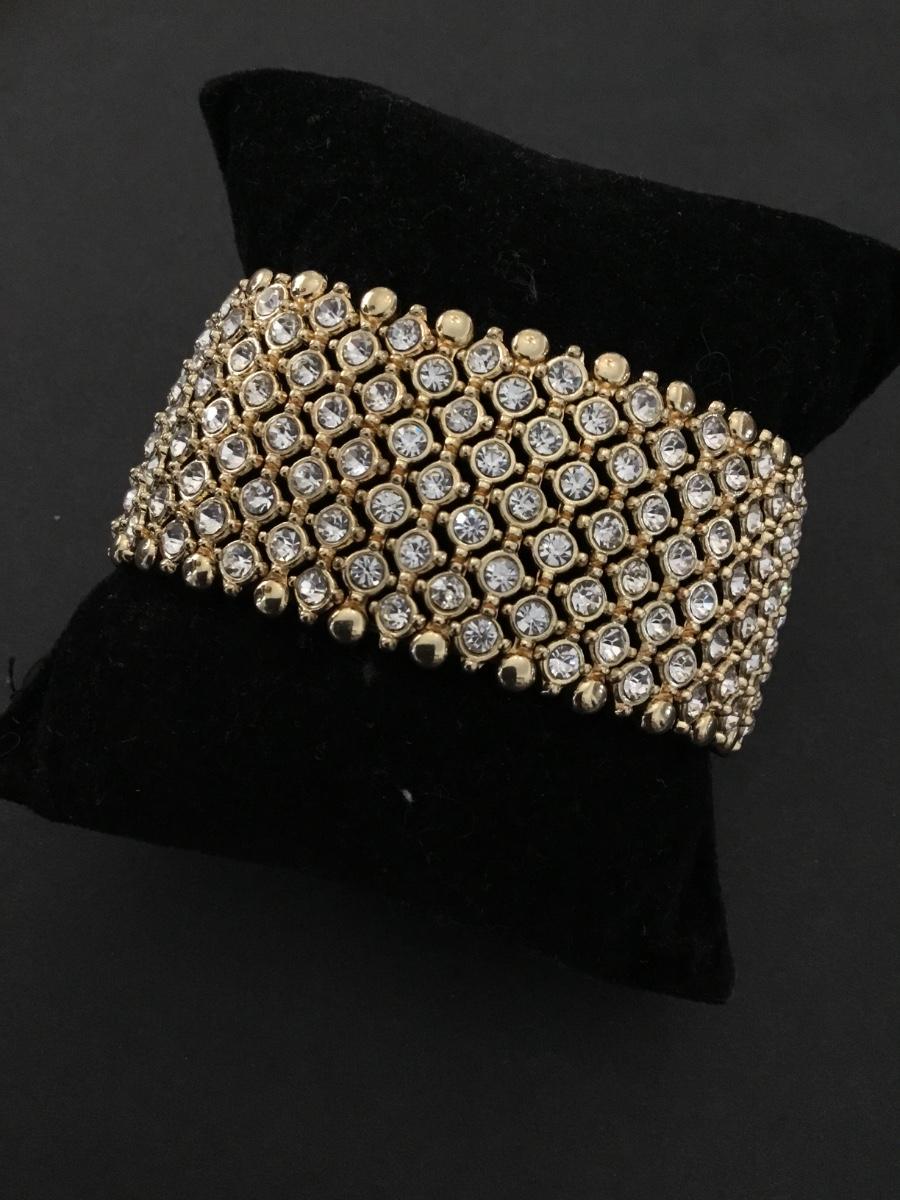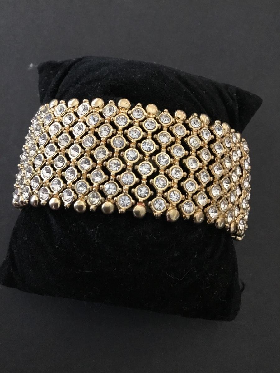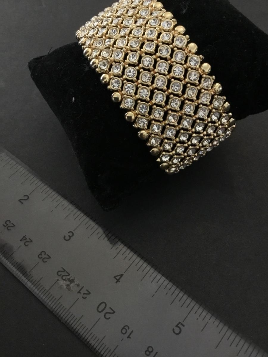 Beautiful thick, heavy gold tone rhinestone stretch bracelet very nice