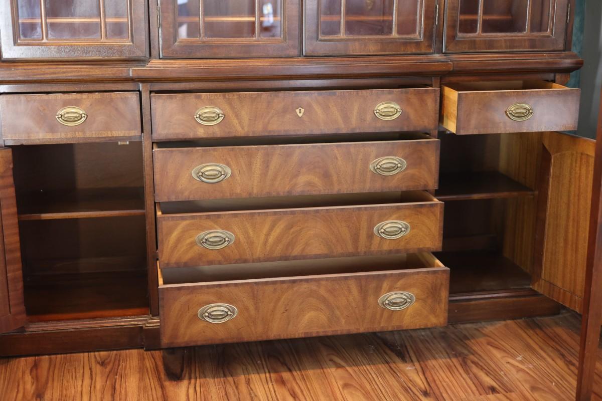 Three lights in the top of the cabinet. Six drawers & two cabinets. The top does slide off the bottom to make for easier transportation.