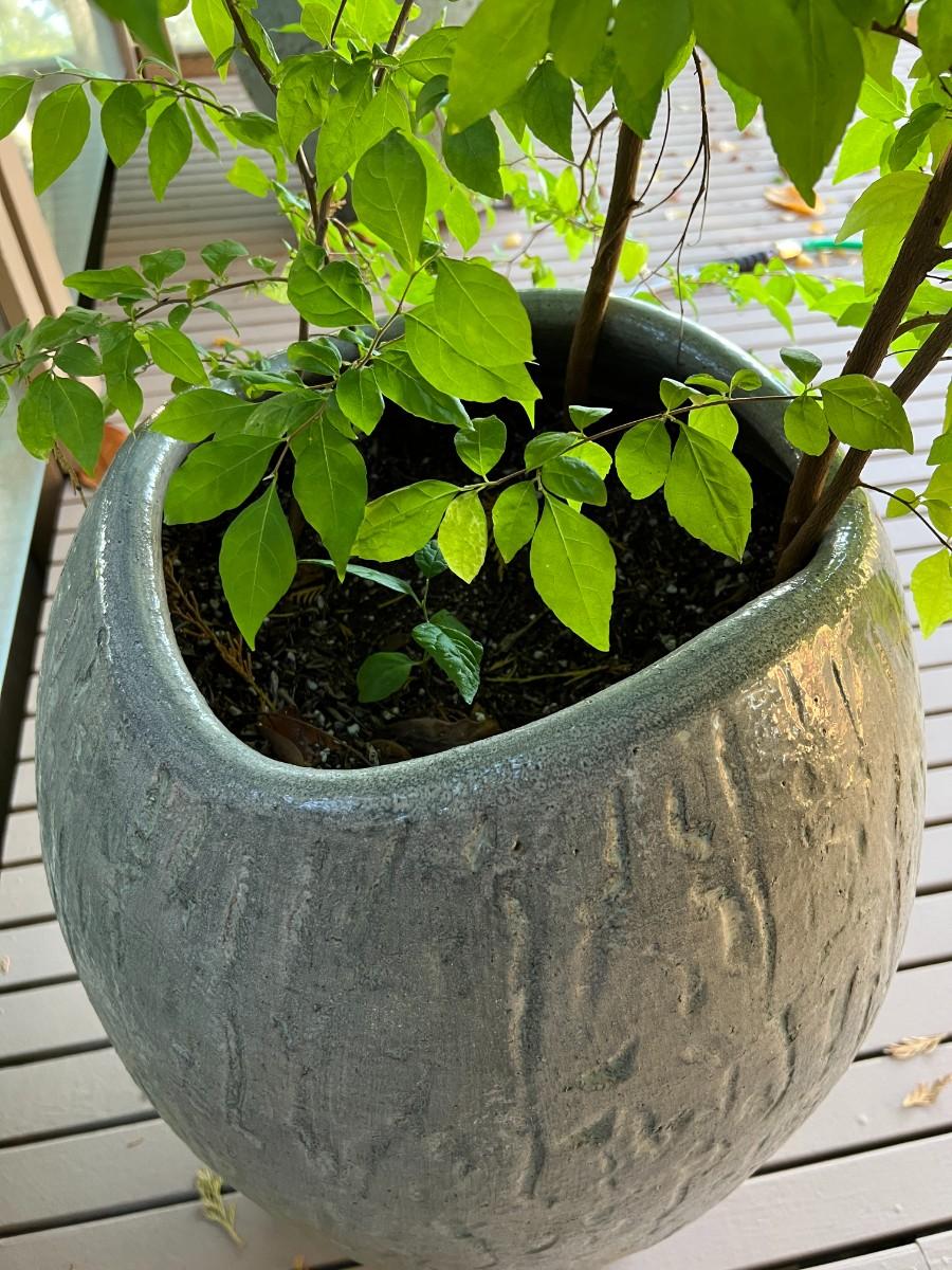 Beautiful Tree Plant in Grey Curved Ceramic Planter Pot. Measurements as shown in photos.