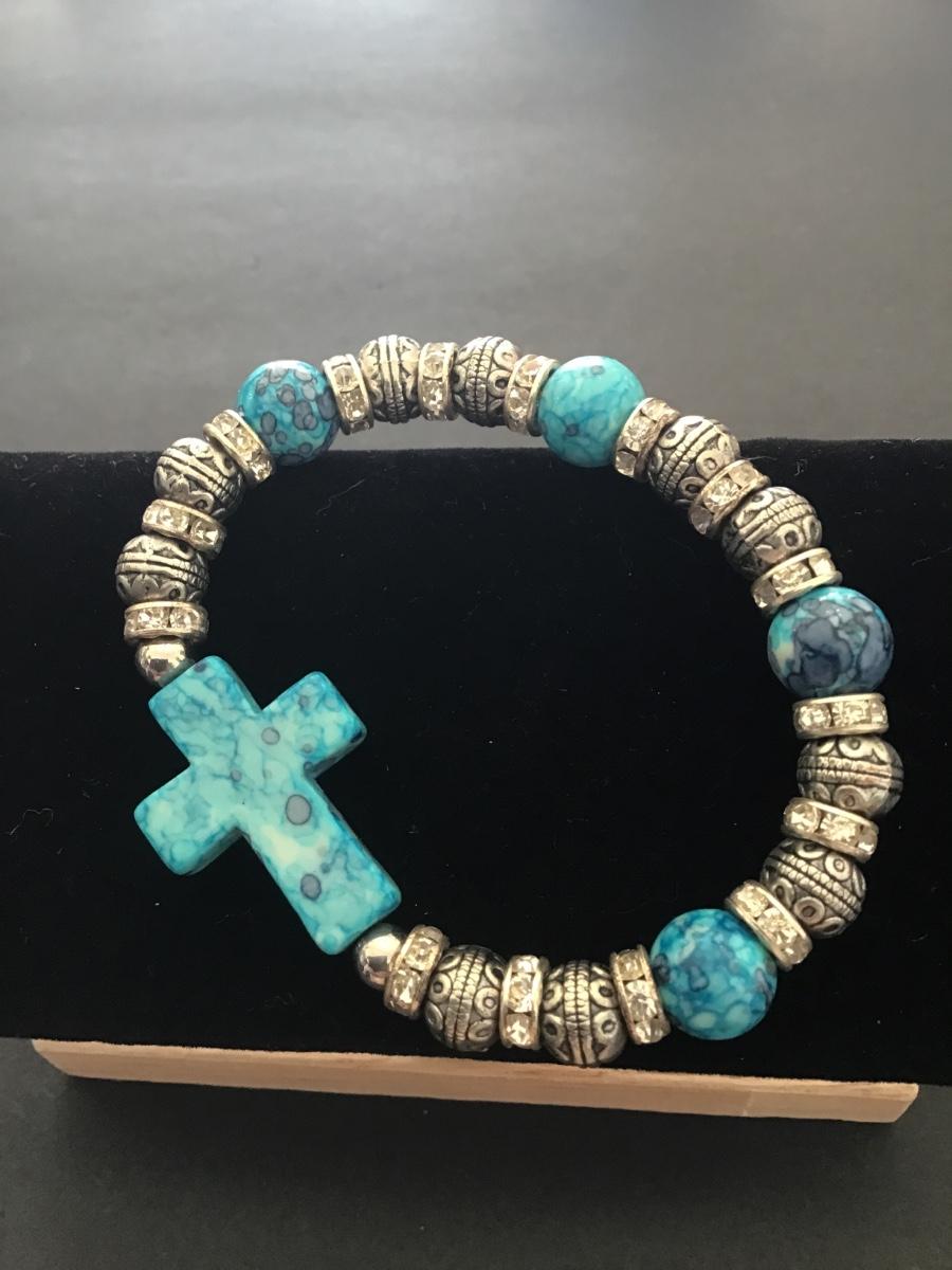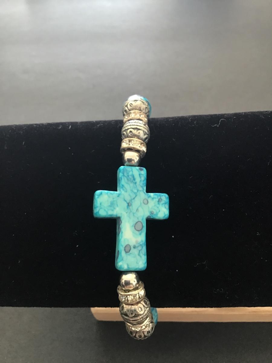 Beautiful turquoise cross beaded stretch bracelet