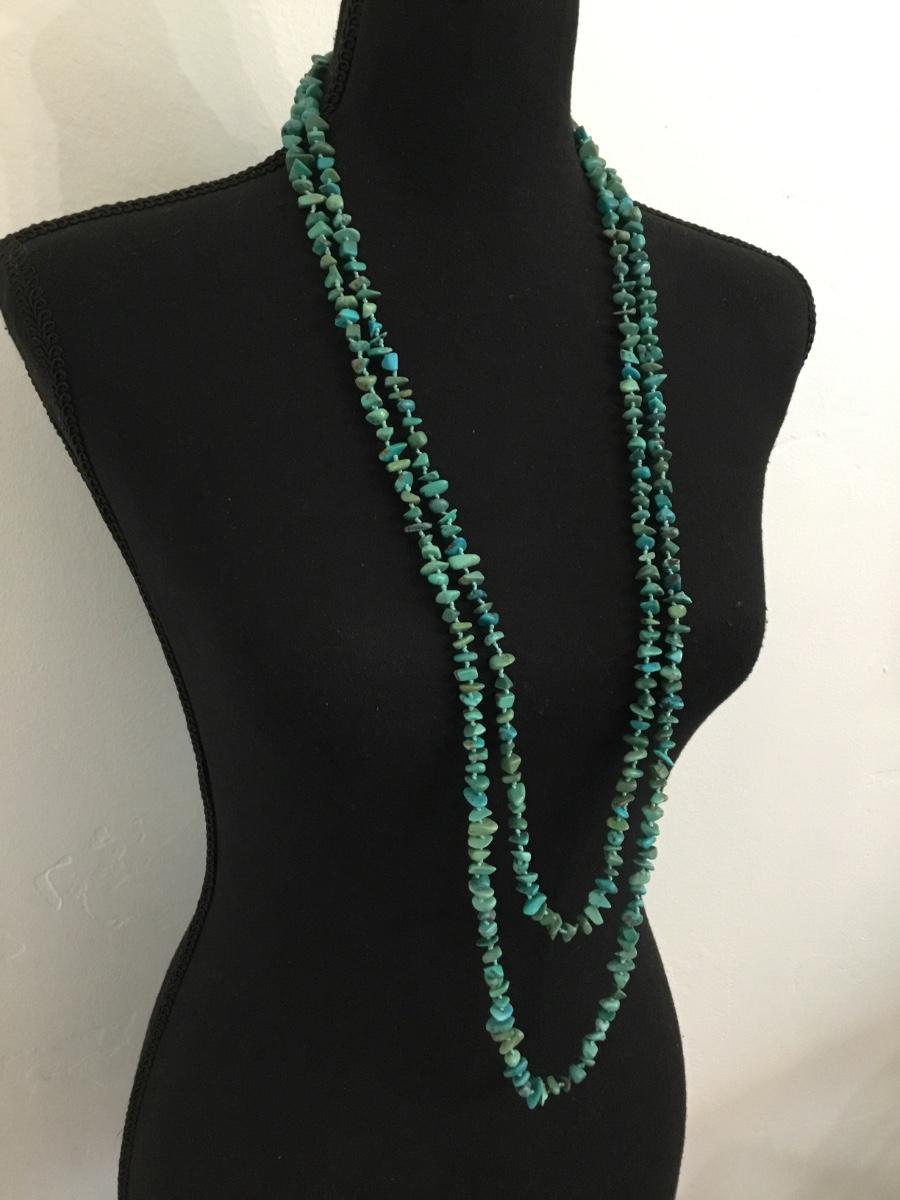 Beautiful turquoise Howlite gem stone double strand long necklace with toggle clasp