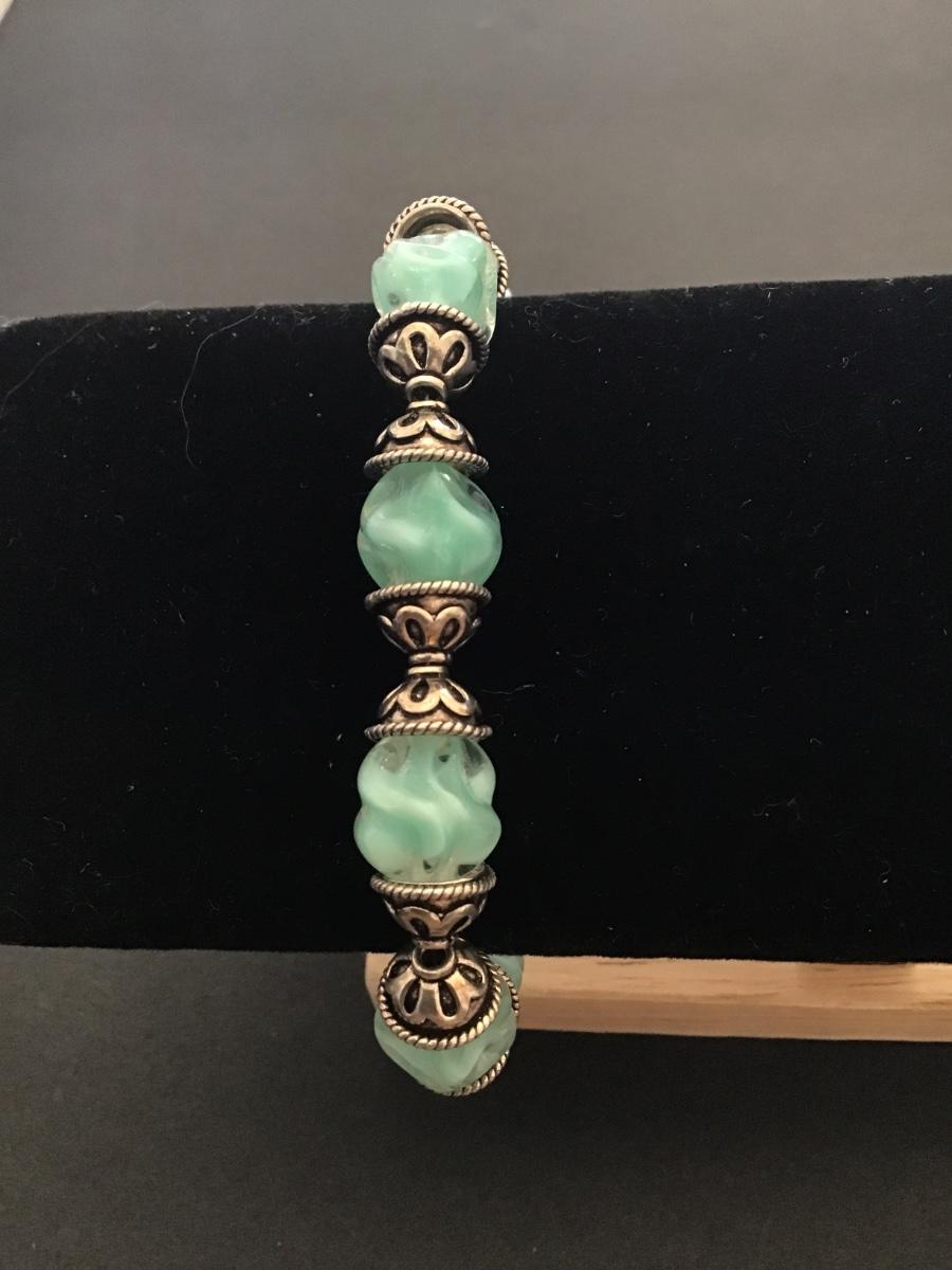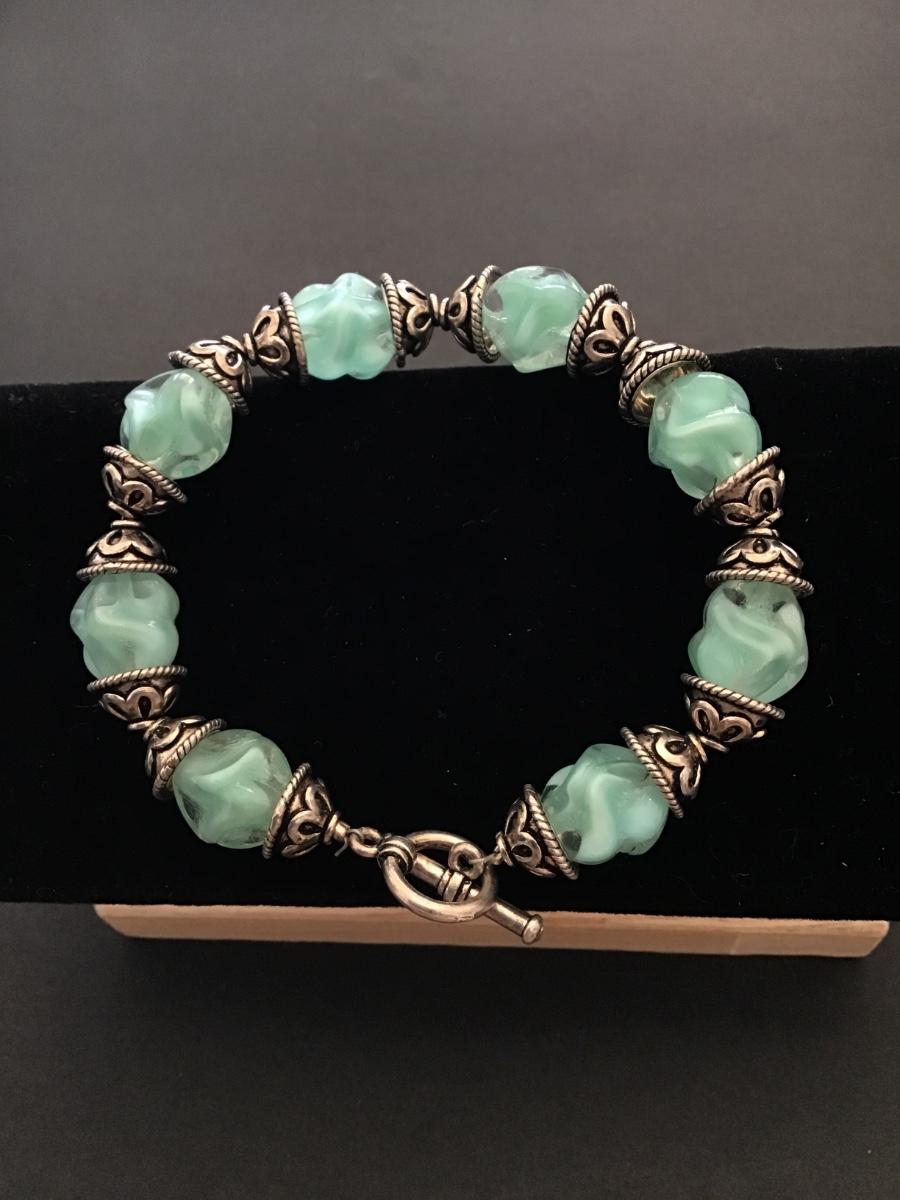 Beautiful turquoise, mint, or sea green glass beaded toggle bracelet