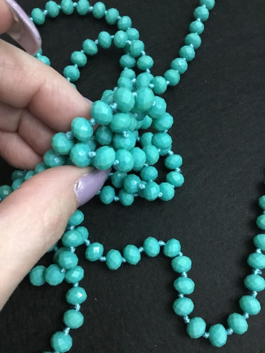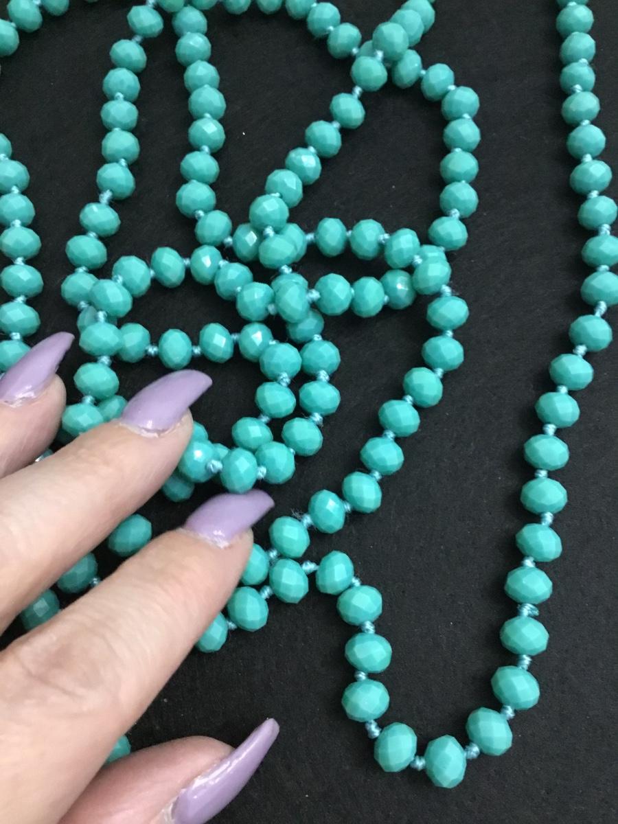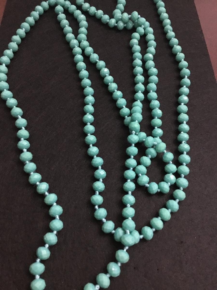 Beautiful turquoise, sparkly glass bead, flapper style necklace