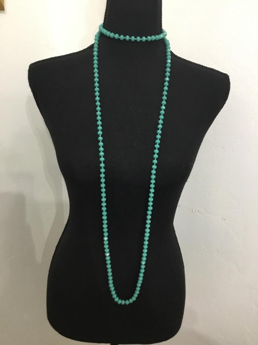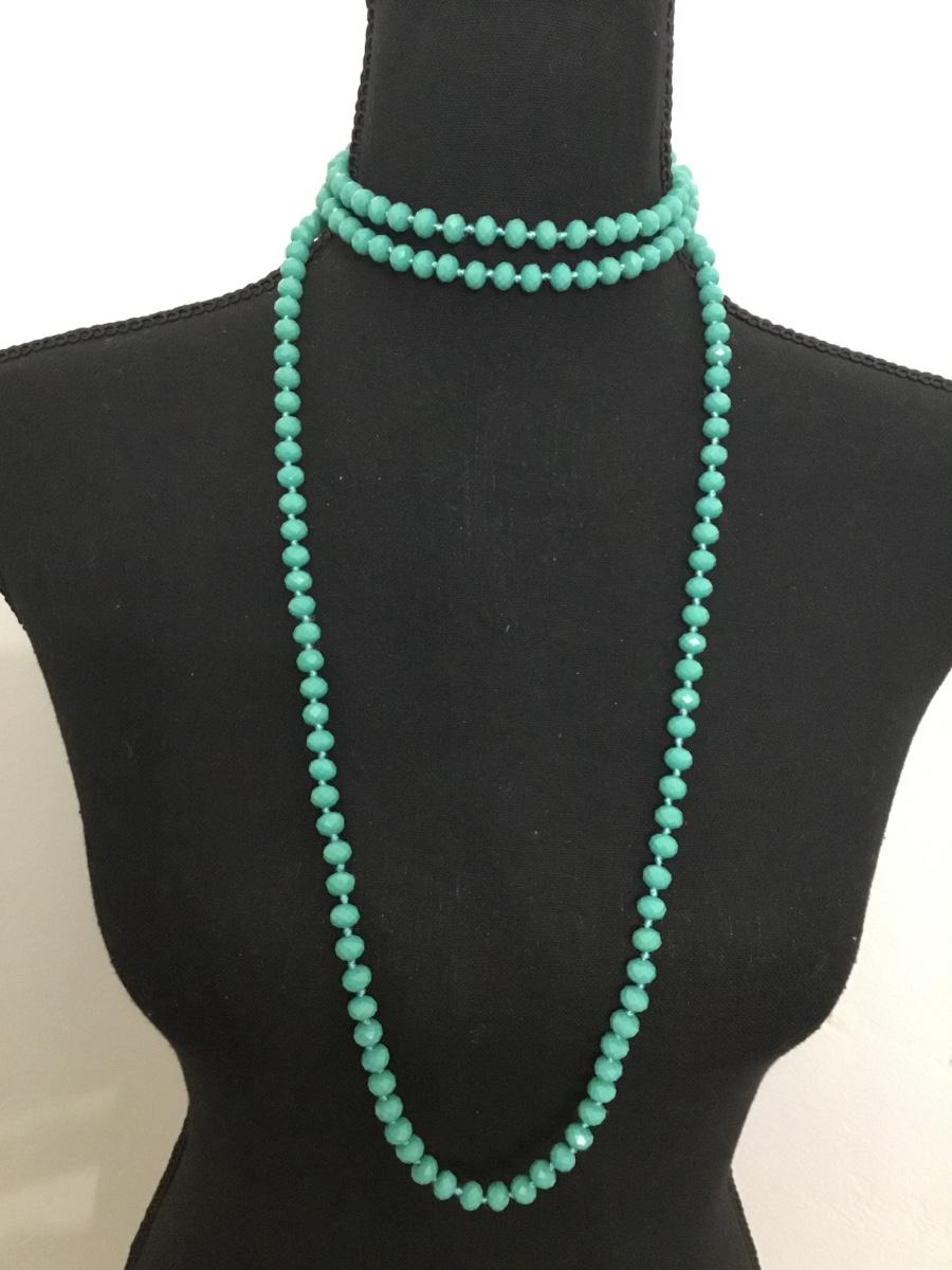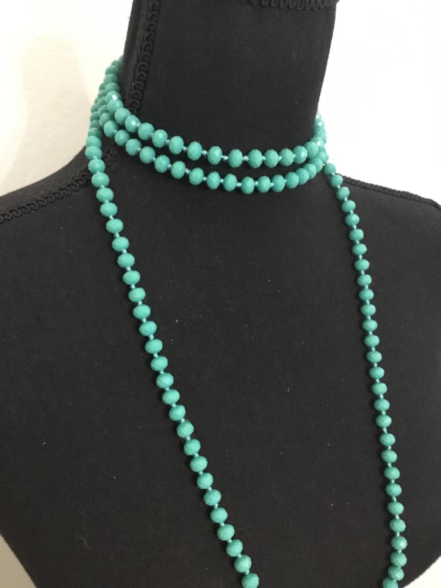Beautiful turquoise, sparkly glass bead, flapper style necklace