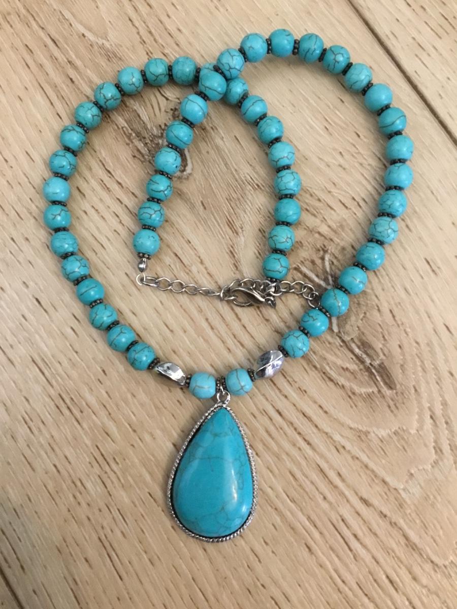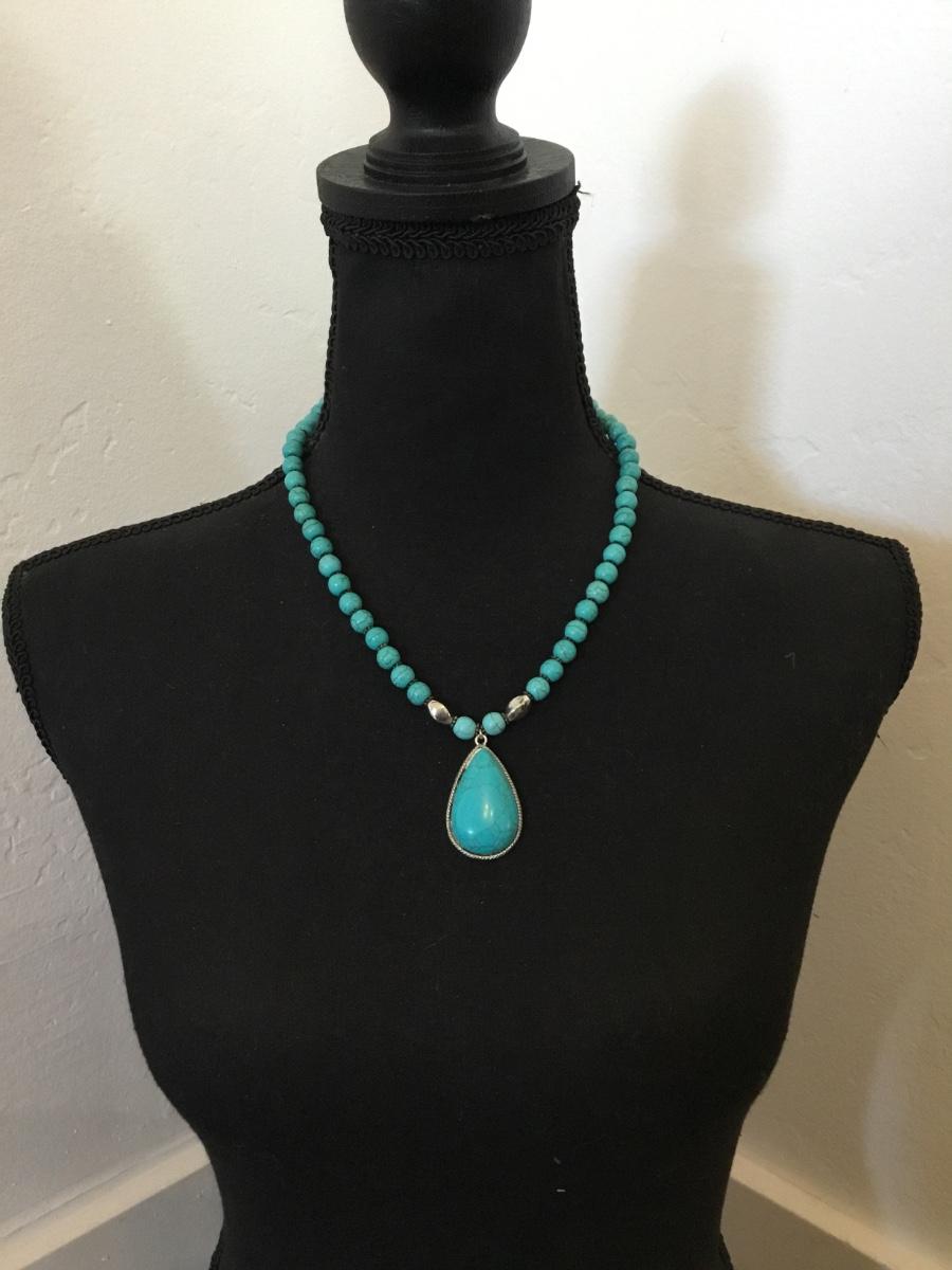 Beautiful, turquoise, stone bead statement necklace