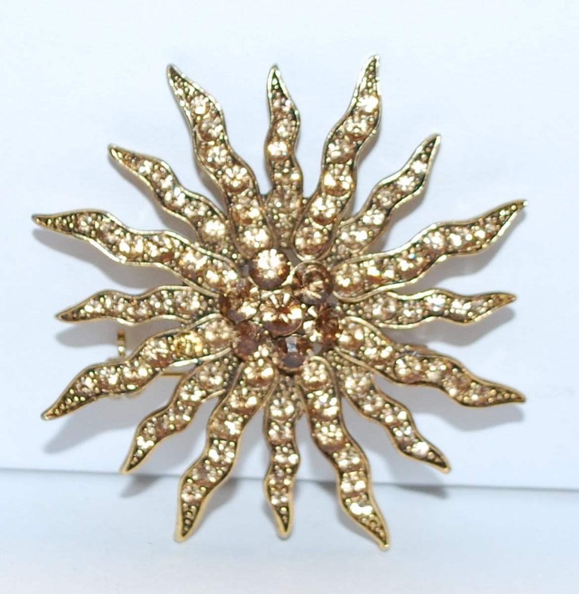 Beautiful Unique CHOCOLATE STONES STAR BROOCH (2¼" Diam.) on a Gold Tone Setting