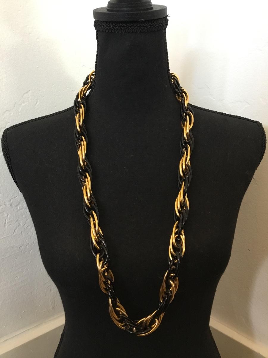 Beautiful very nice black and gold tone light Metal chain statement, necklace