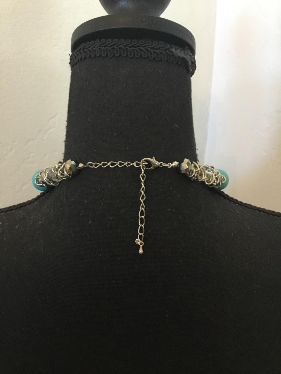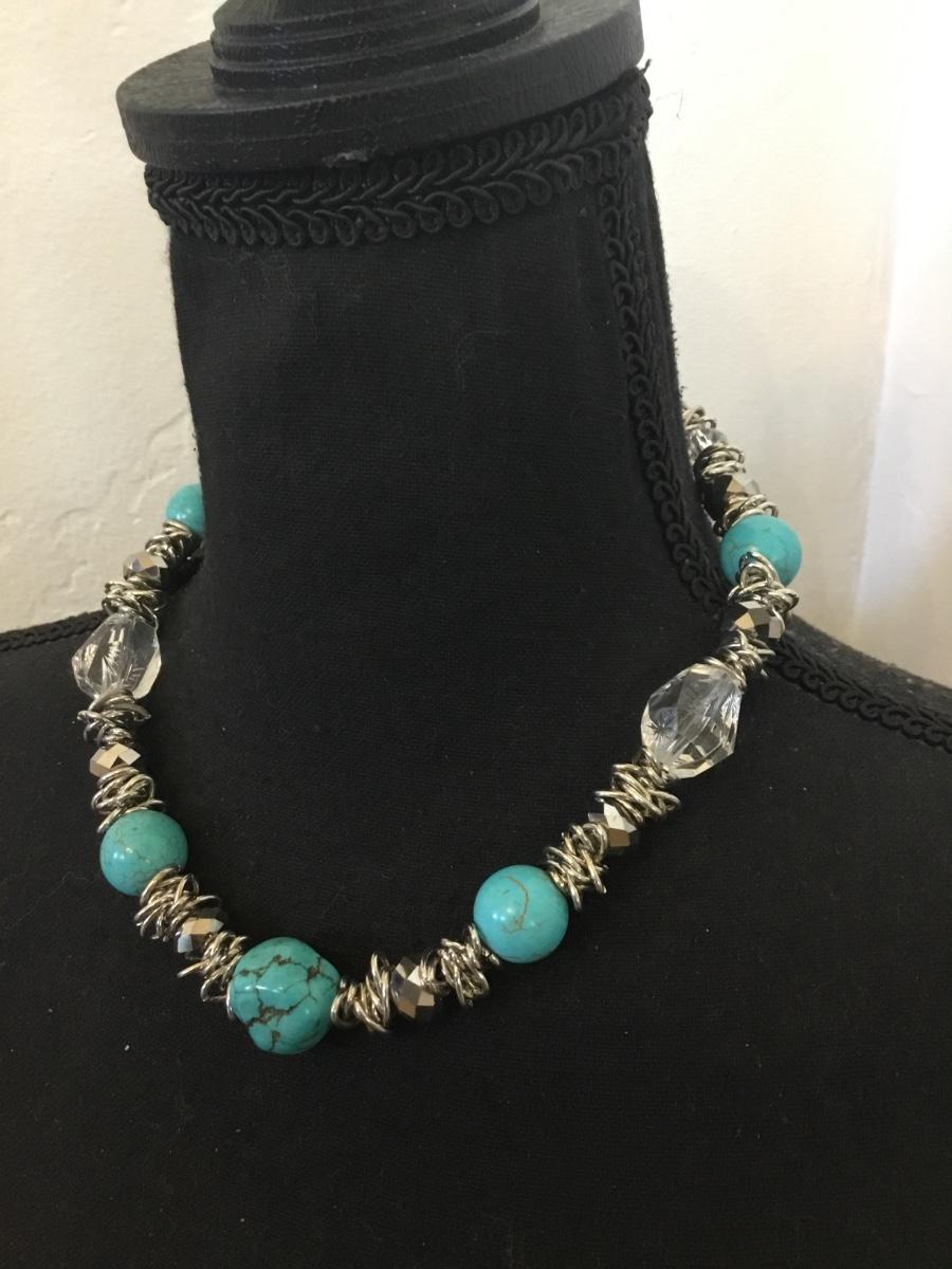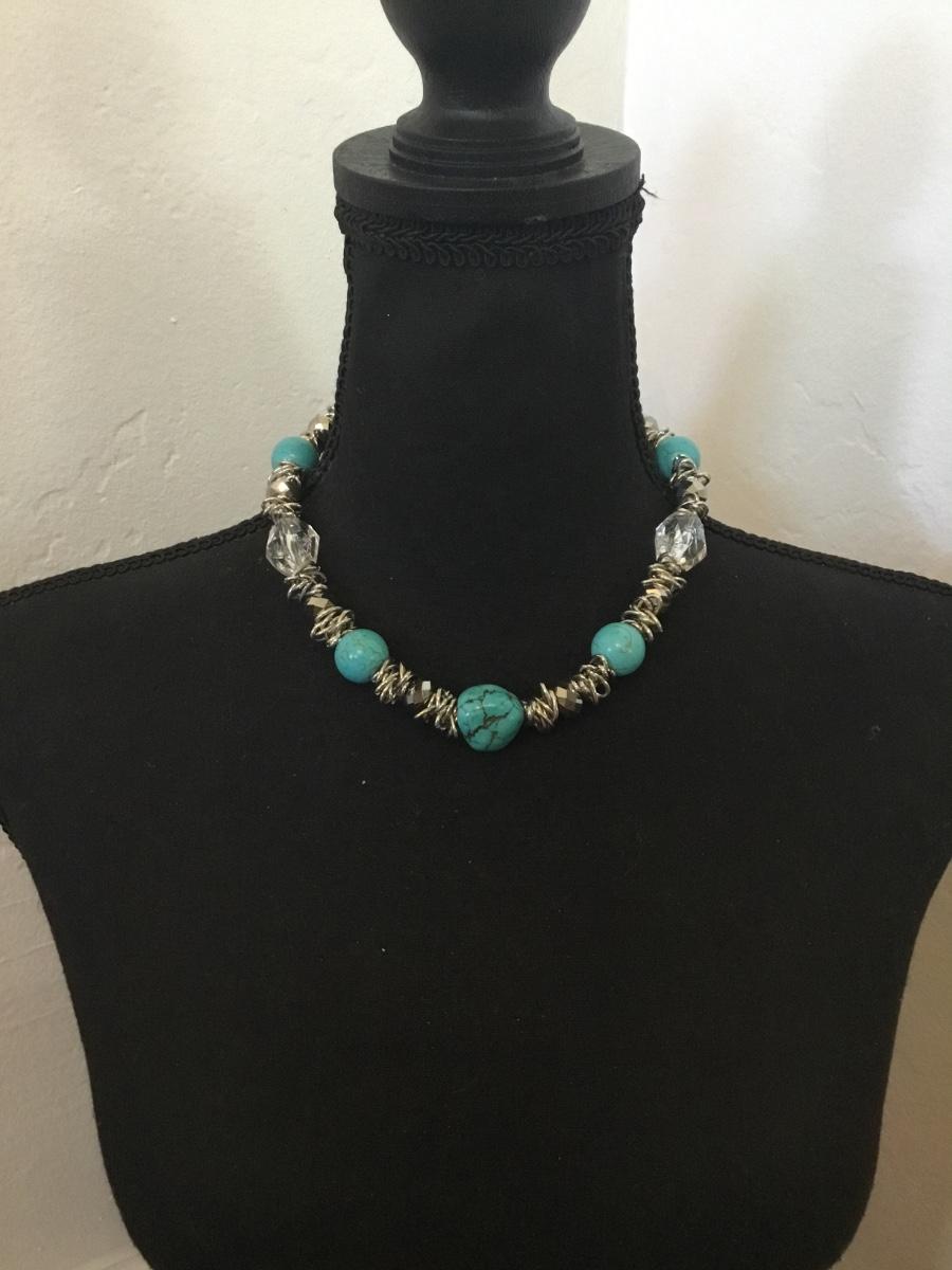 Beautiful very nice Crystal faux turquoise chunky need statement necklace