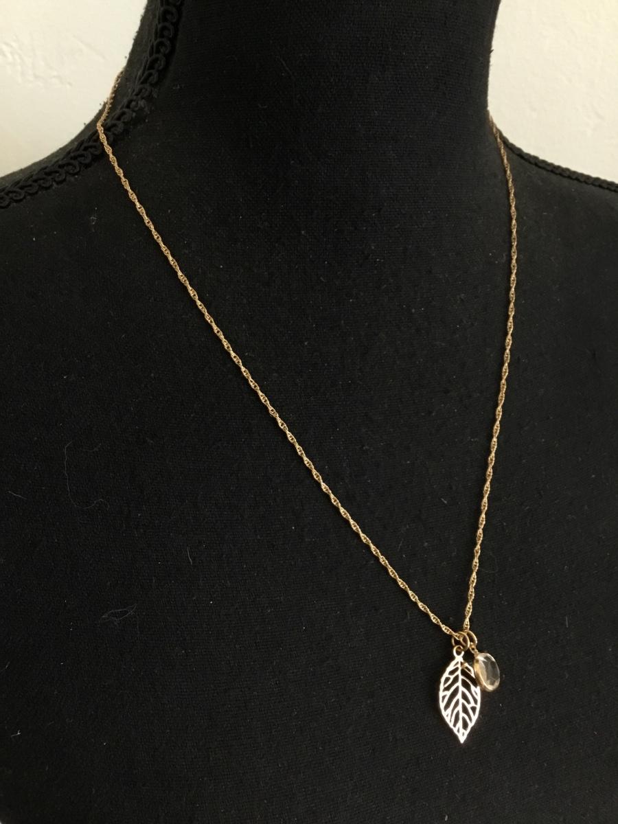 Beautiful very nice gold tone, leaf crystal charm necklace