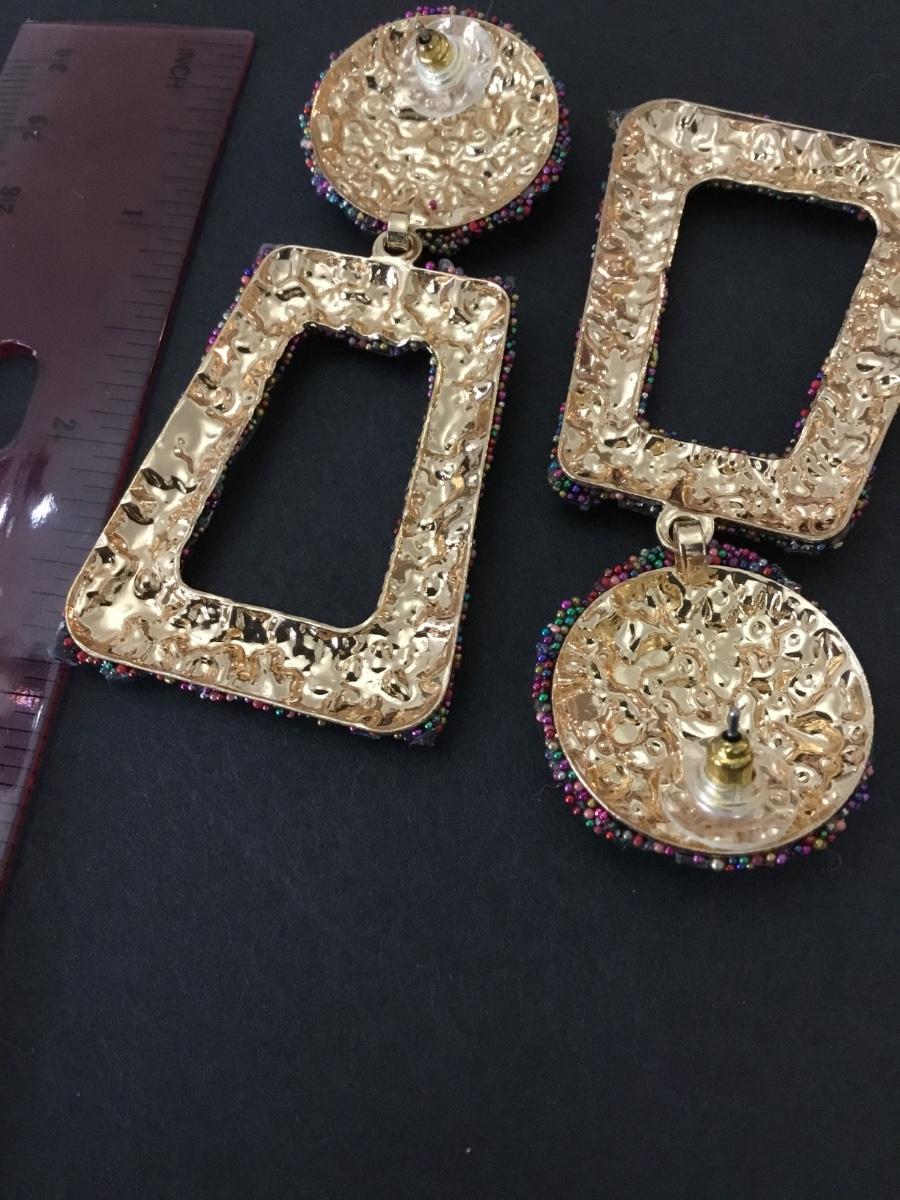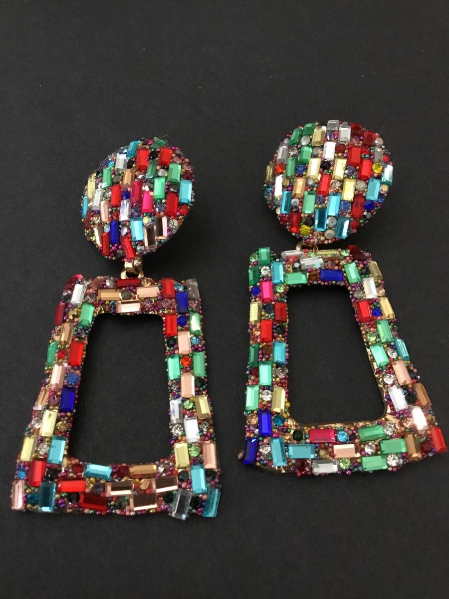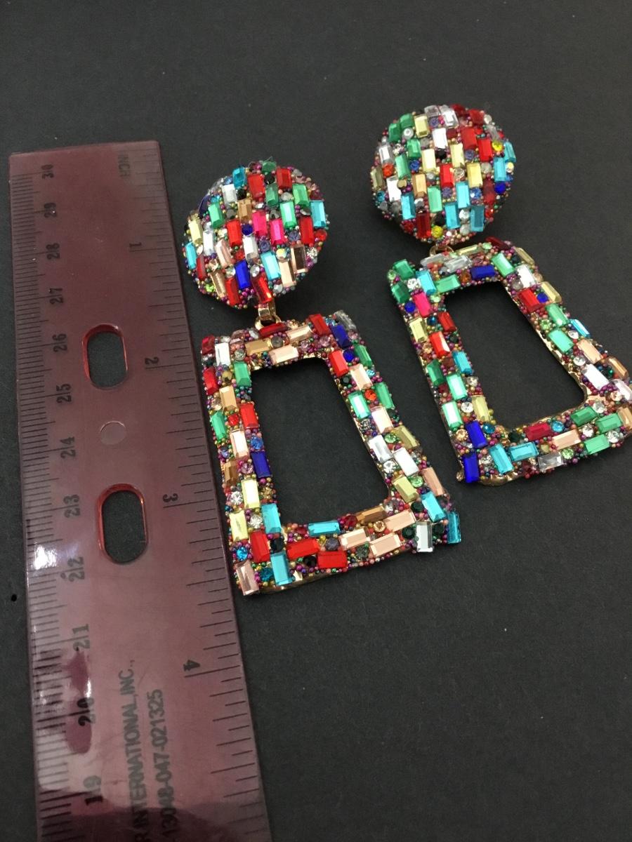 Beautiful very nice gold tone, multicolored crystal rhinestone statement earrings