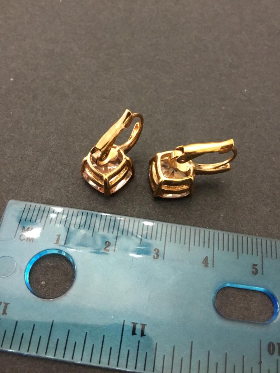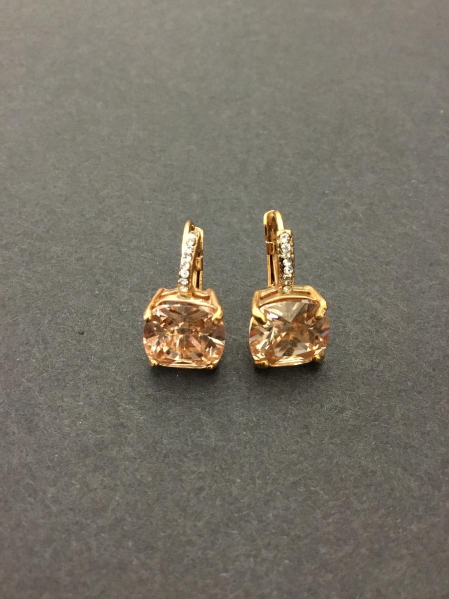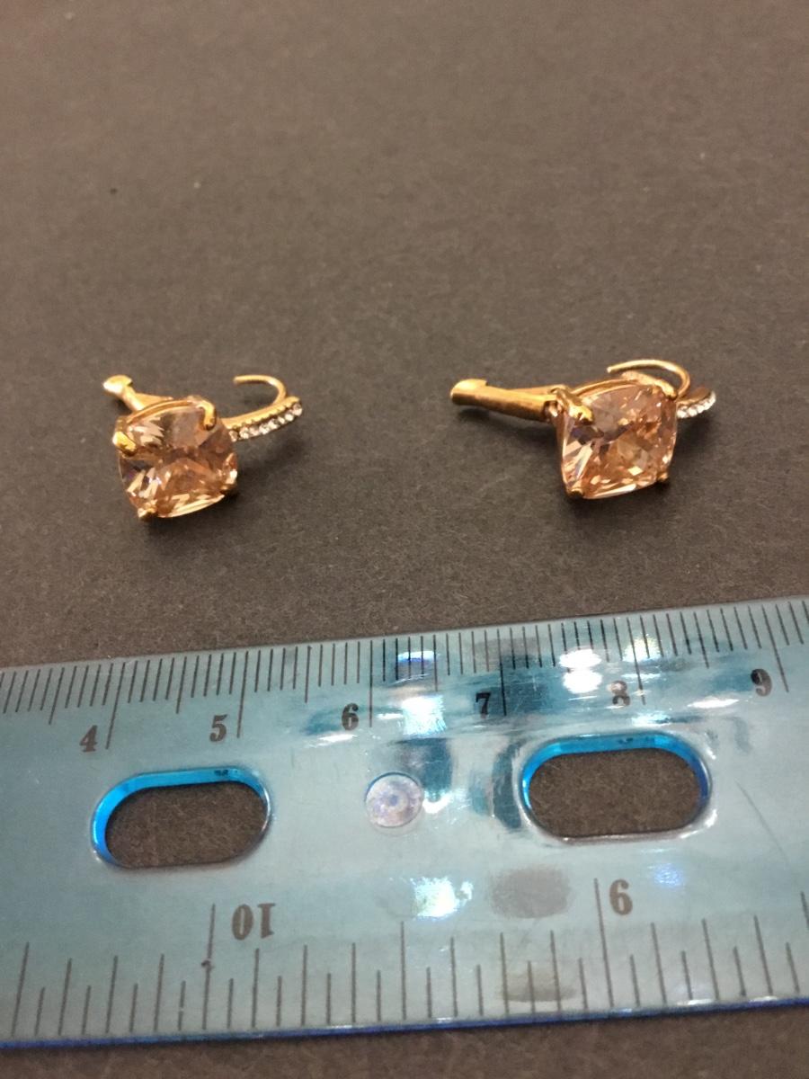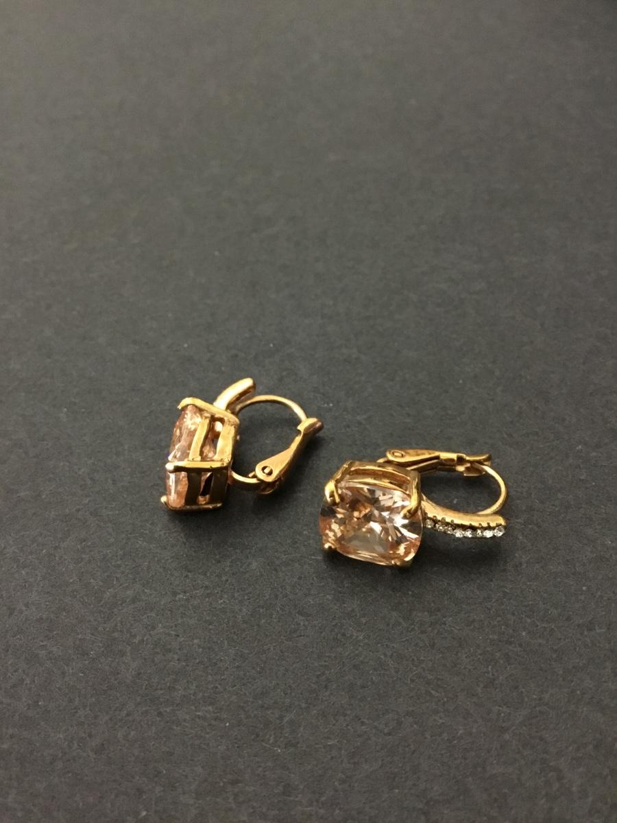 Beautiful very nice gold toned, apricot rhinestone, crystal rhinestone dangle earrings