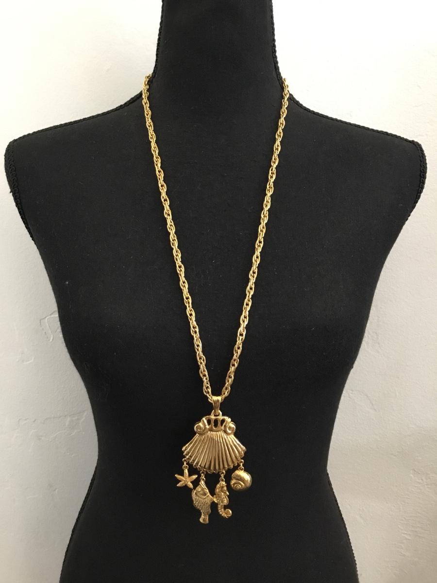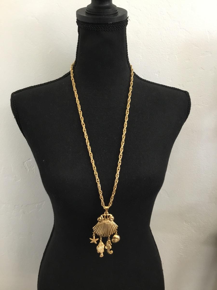 Beautiful very nice goldtone, seashell, charm statement, necklace