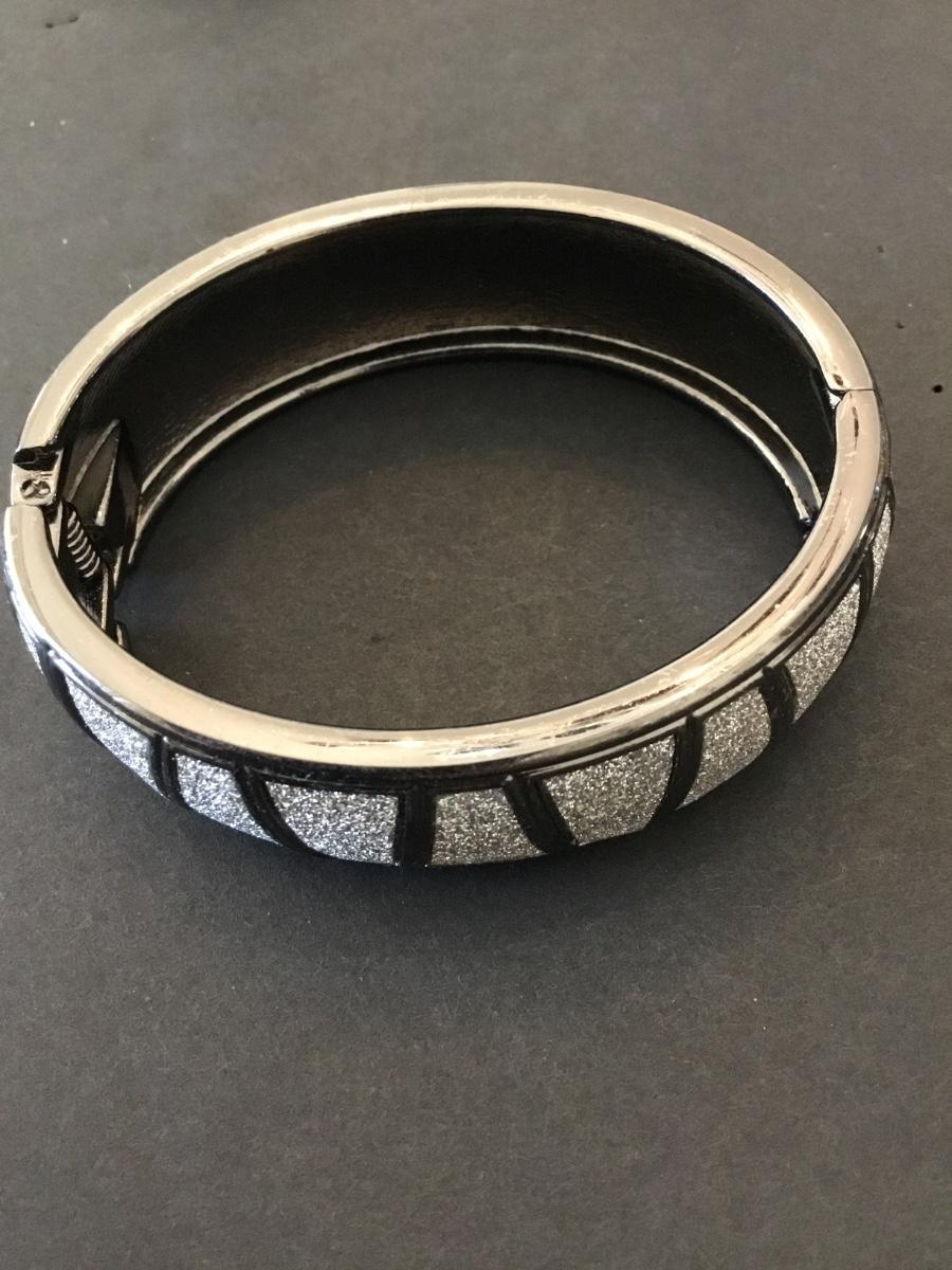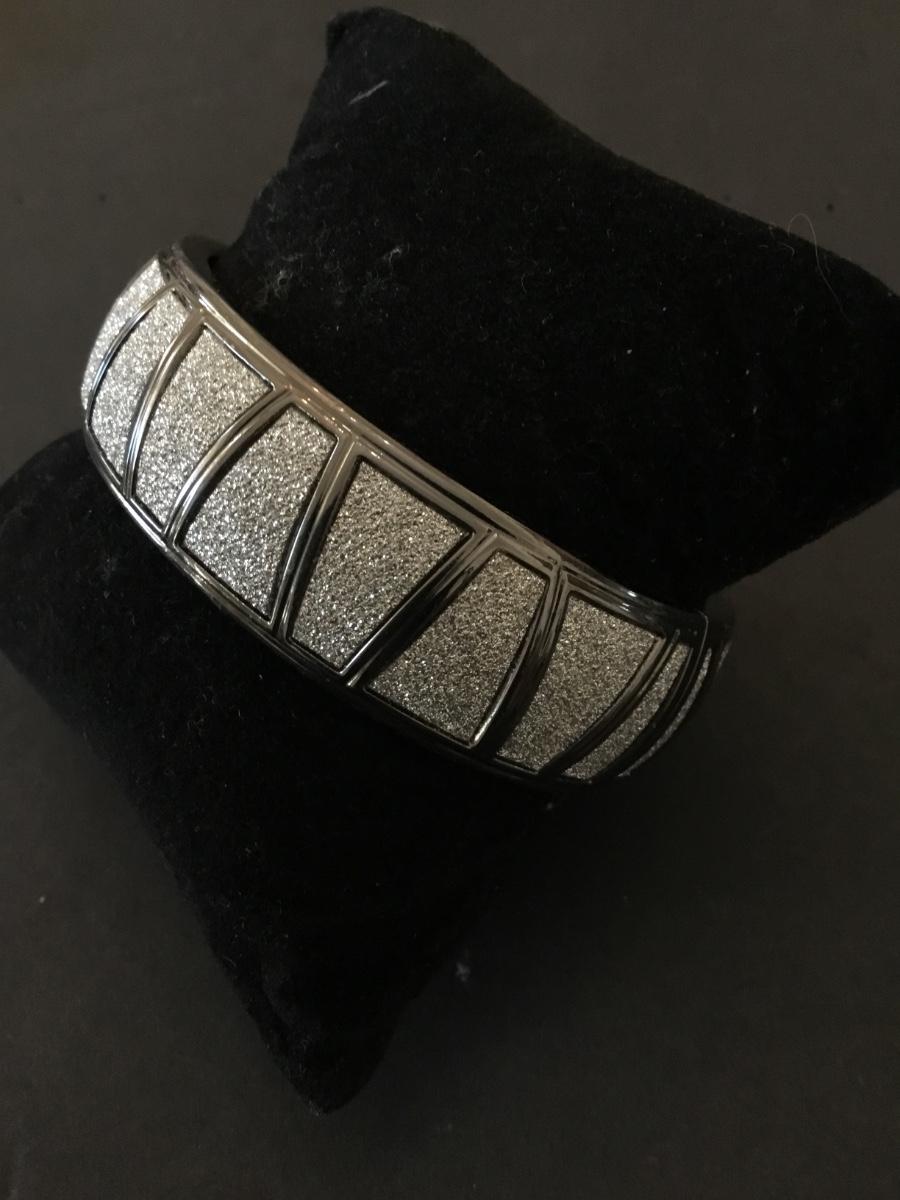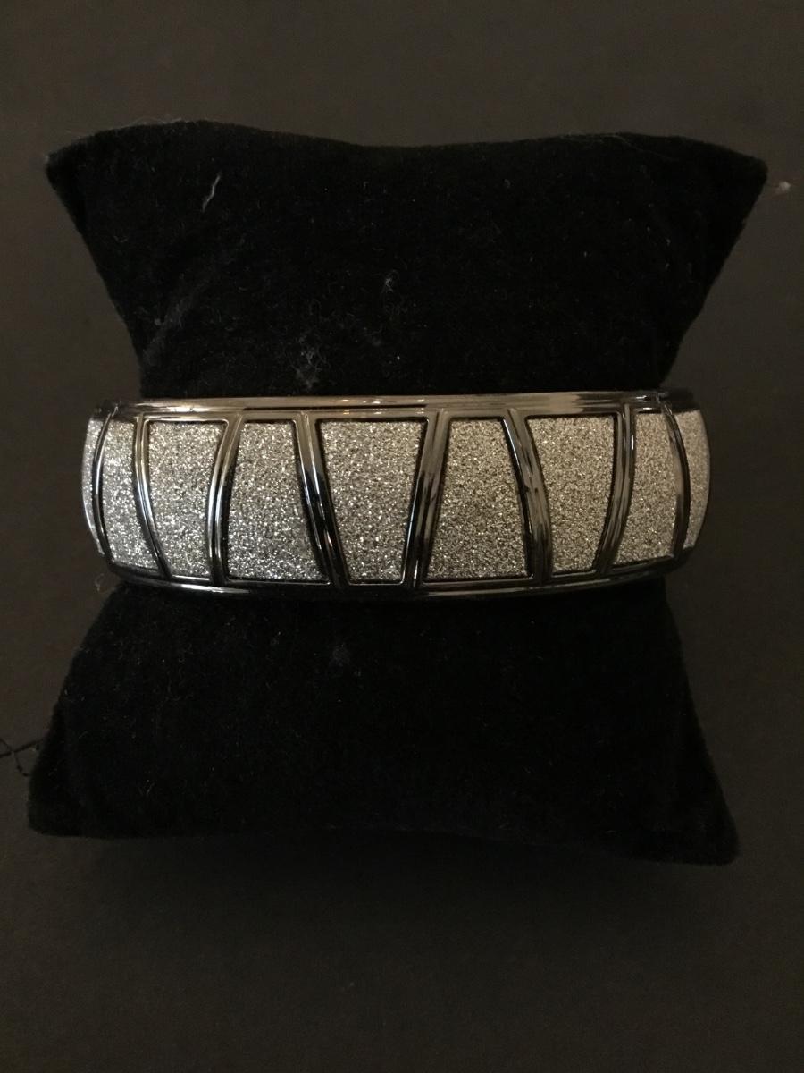 Beautiful very nice gunmetal gray sparkly, glitter, hinged bracelet