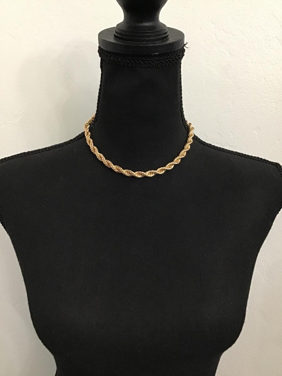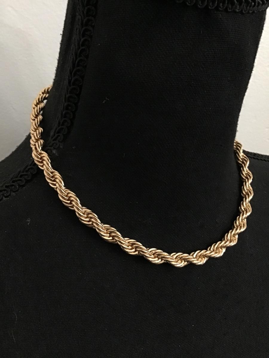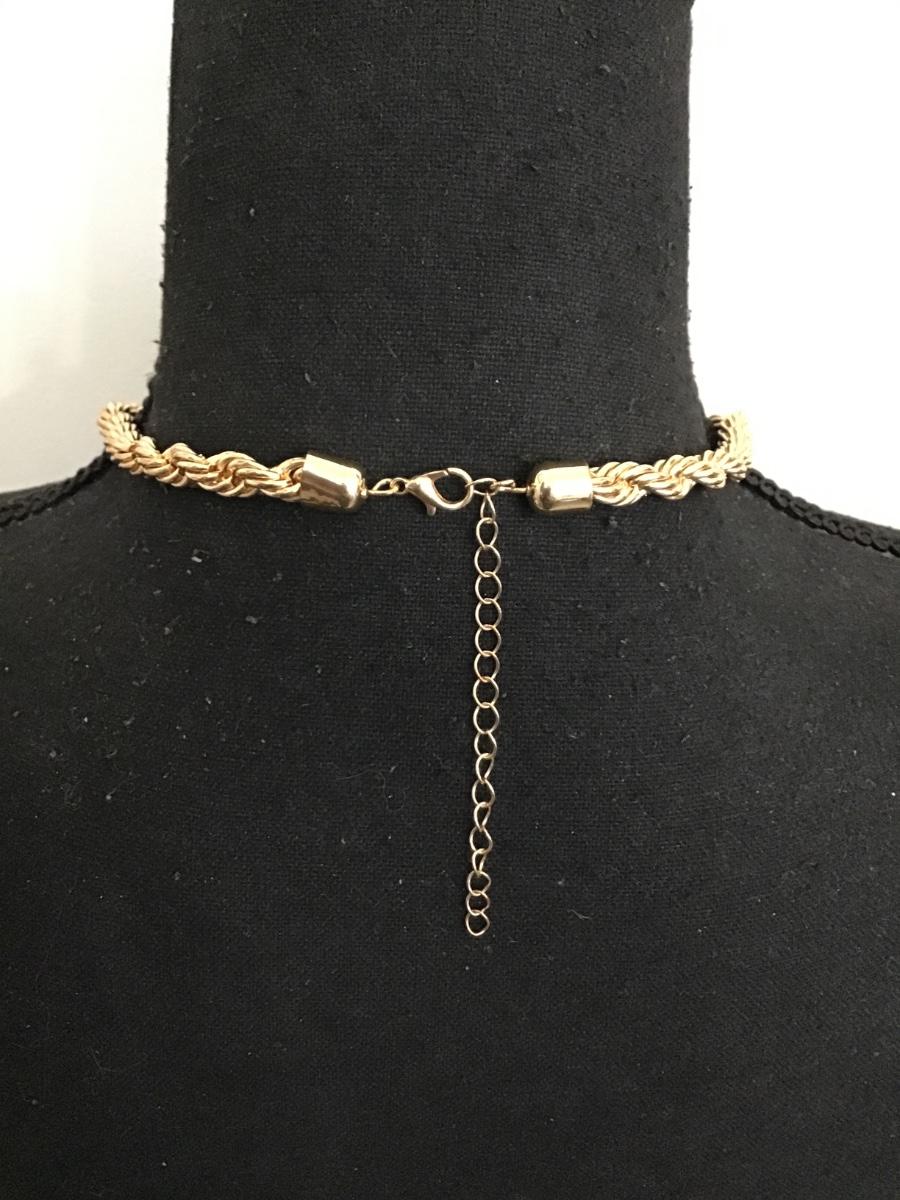 Beautiful very nice heavy gold tone, braided chain collar necklace