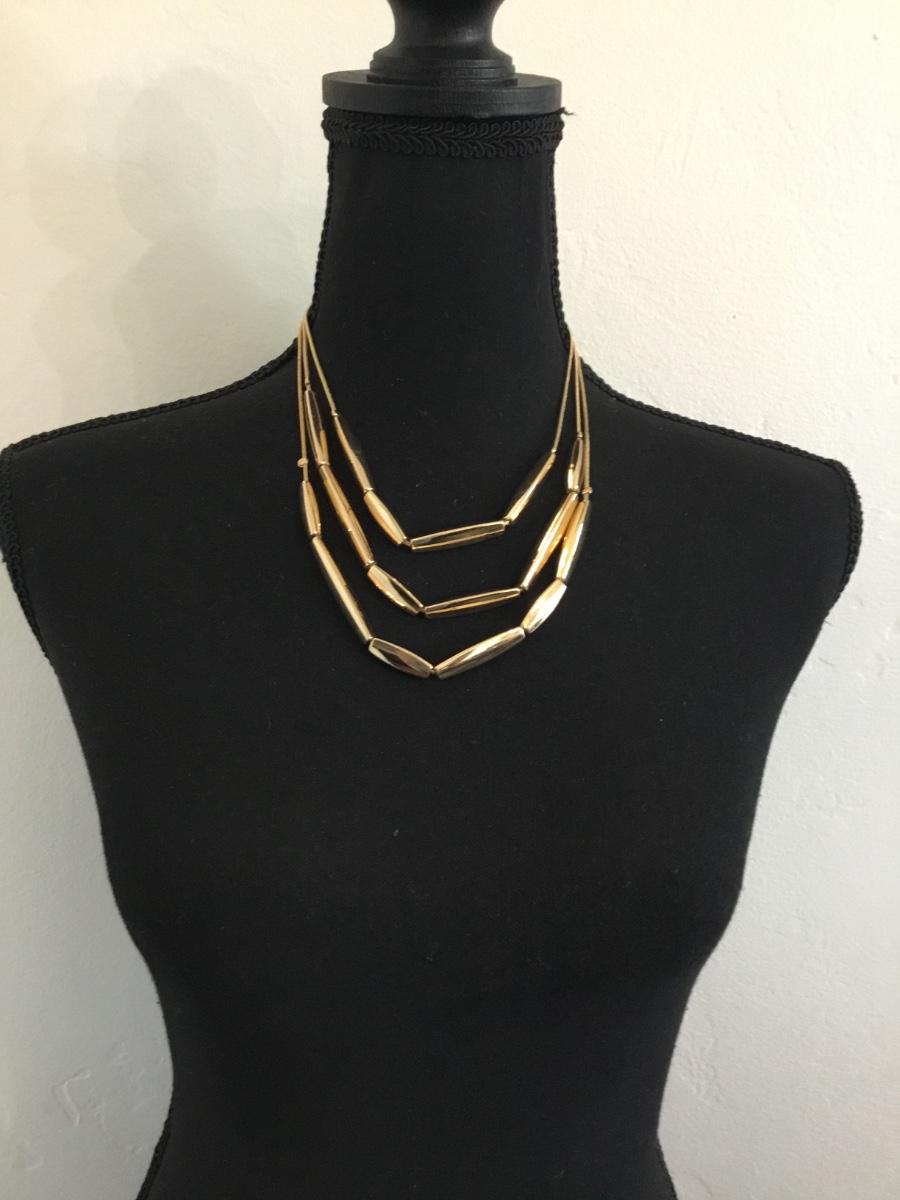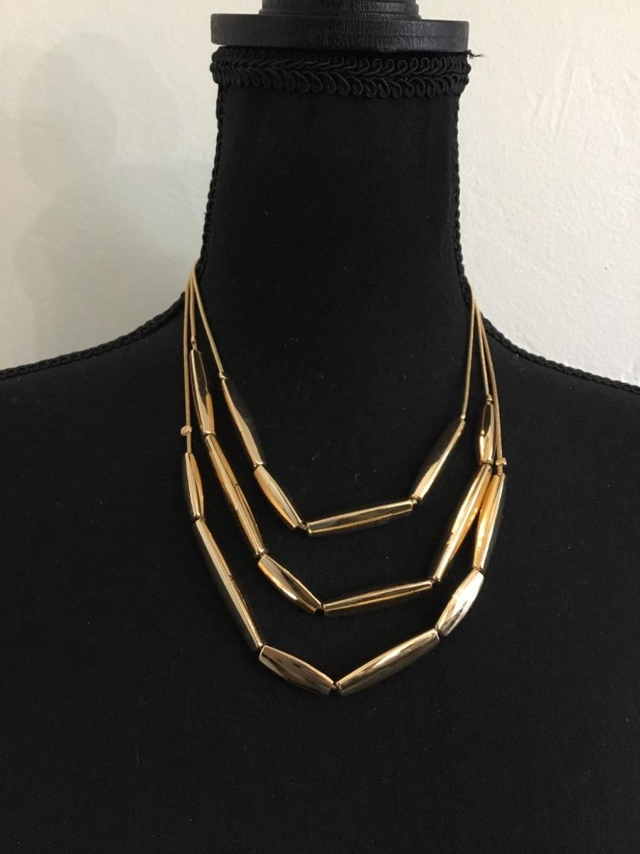 Beautiful very nice heavy three strand, gold, toned fashion necklace