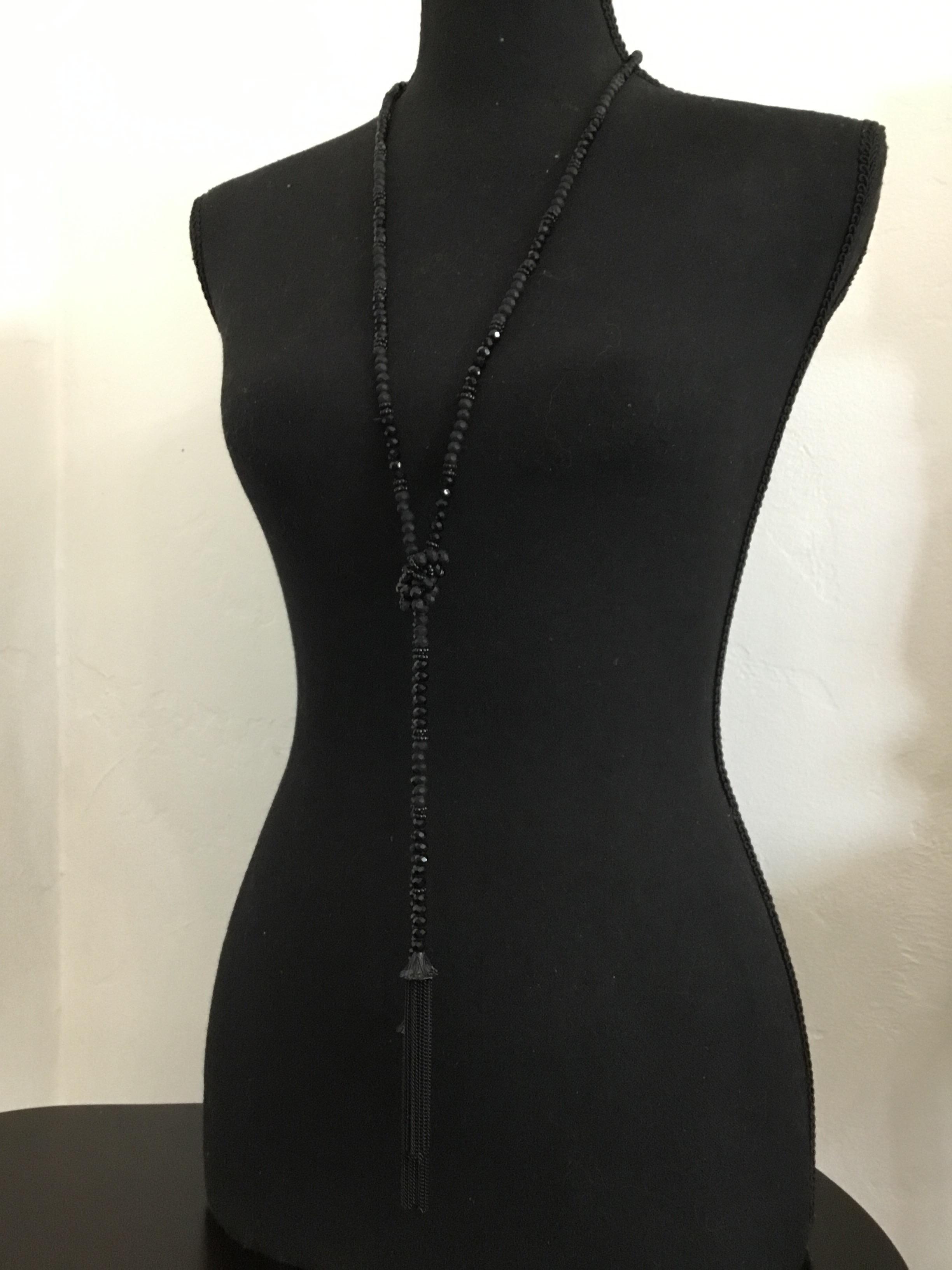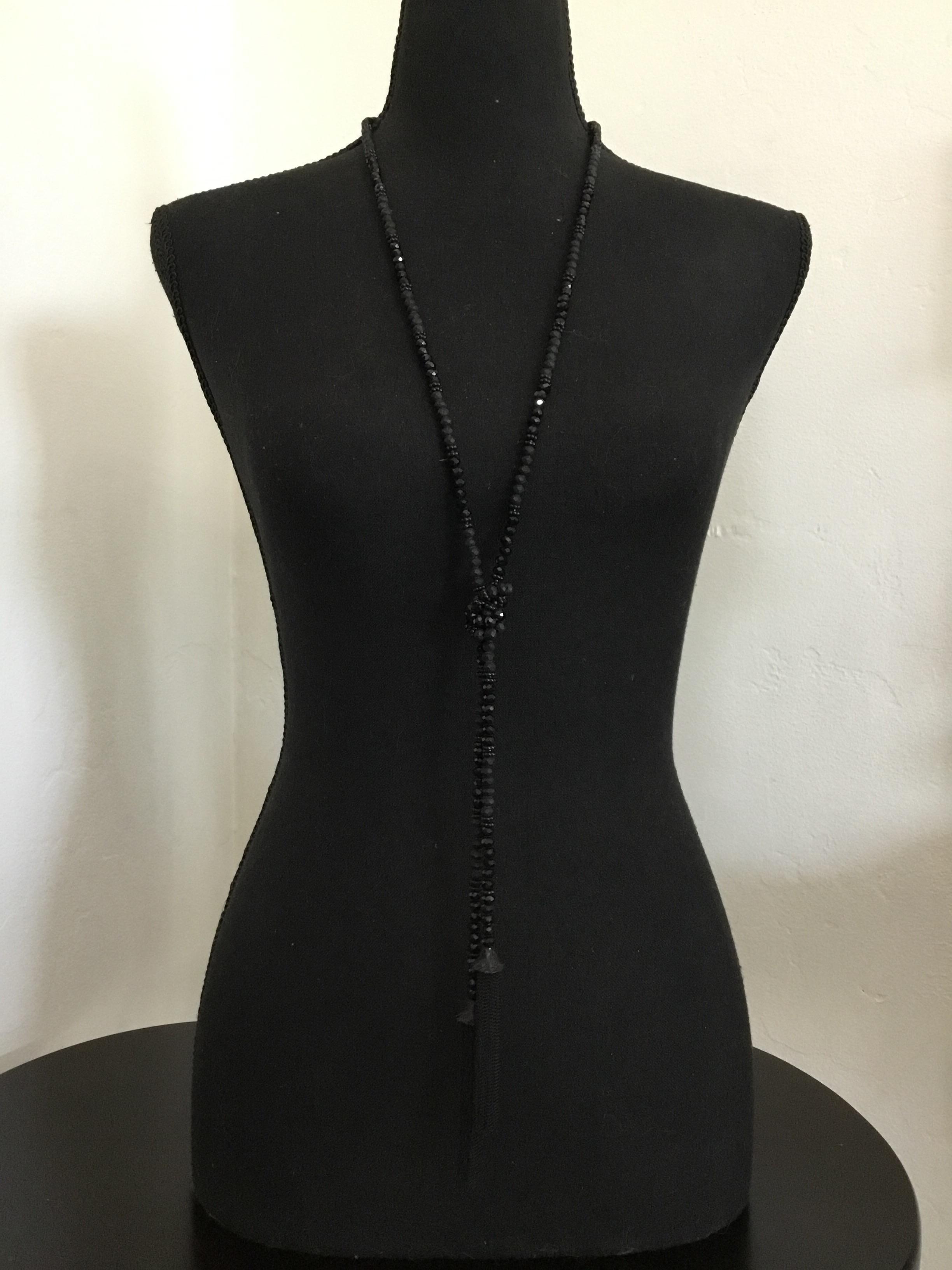 Beautiful very nice jet black tassel, rhinestone stone bead necklace. Very nice very pretty.