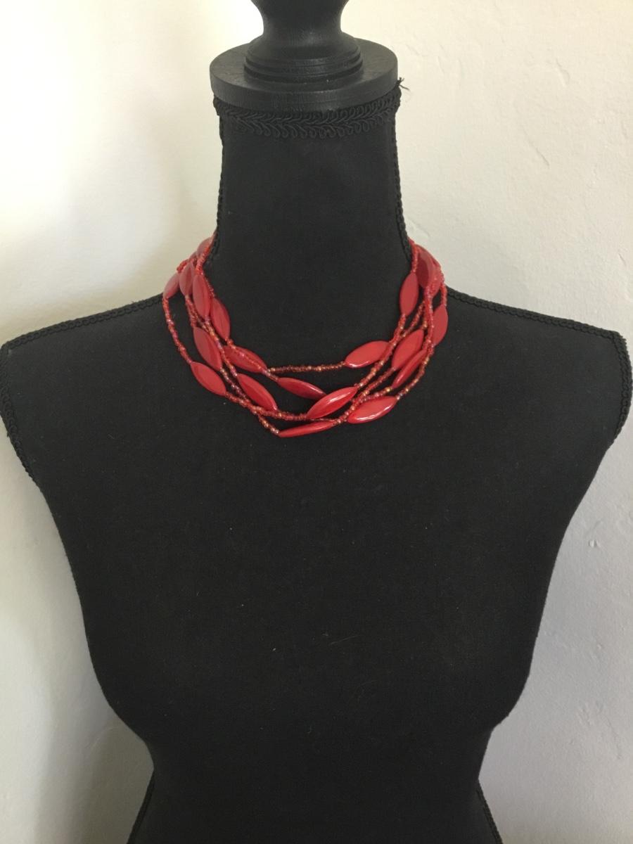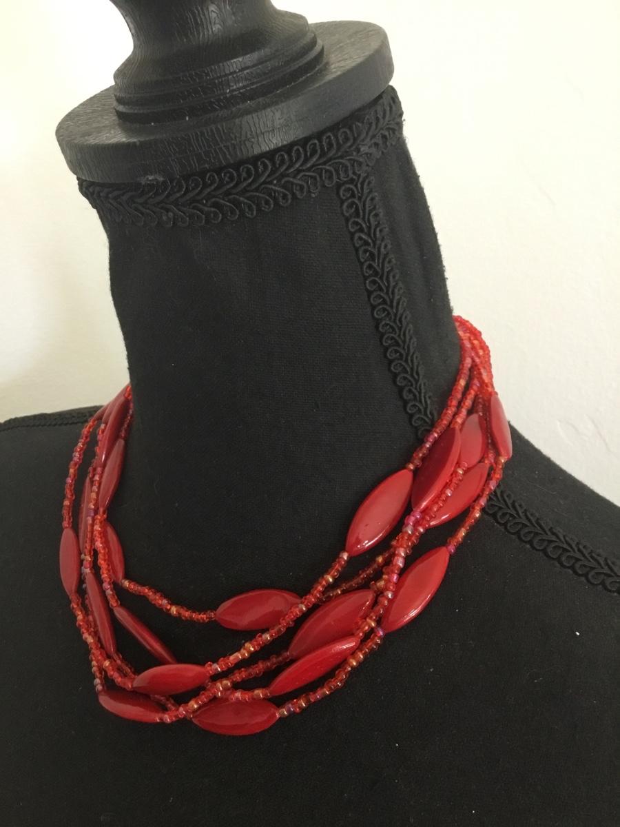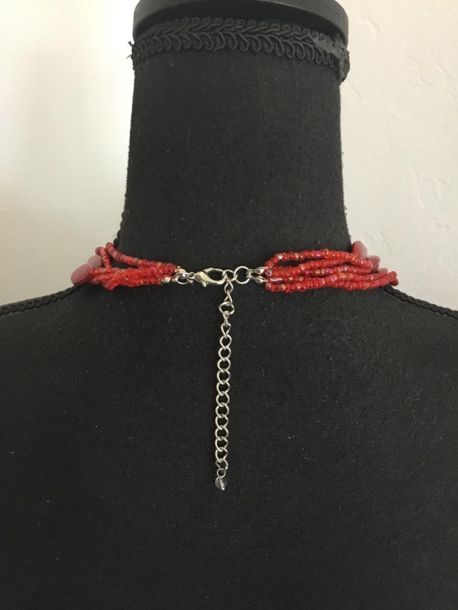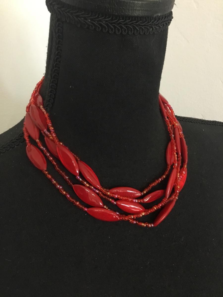 Beautiful very nice layered cherry, red shell and glass bead necklace
