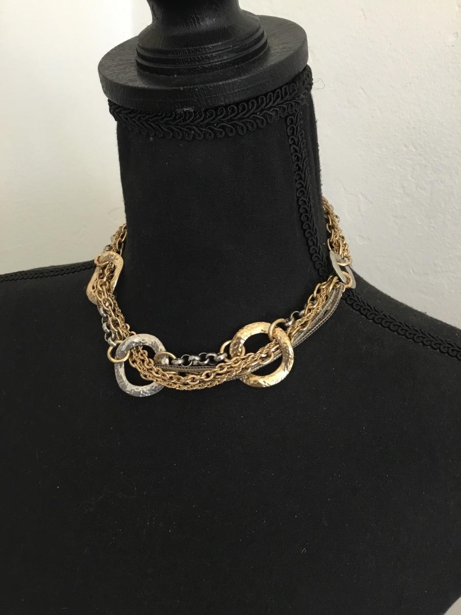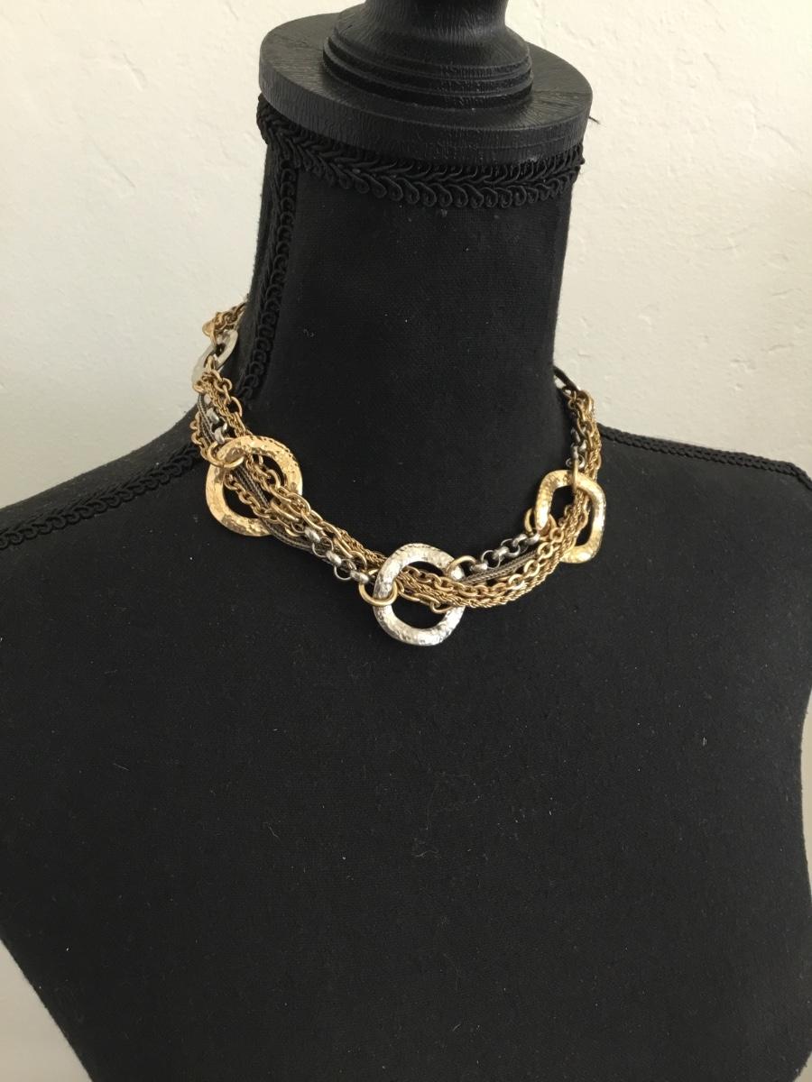 Beautiful very nice silver and gold toned VCLM caller statement necklace