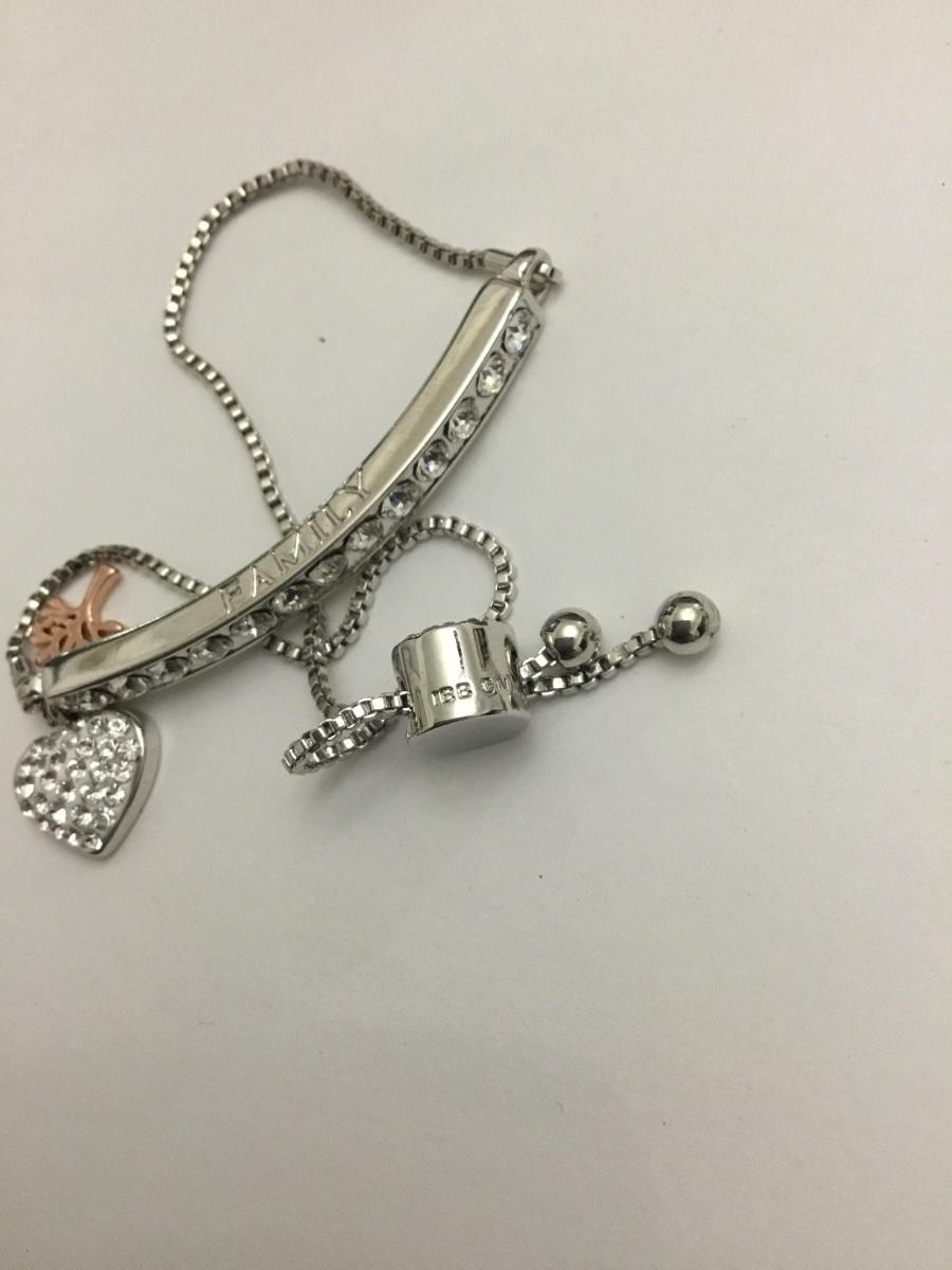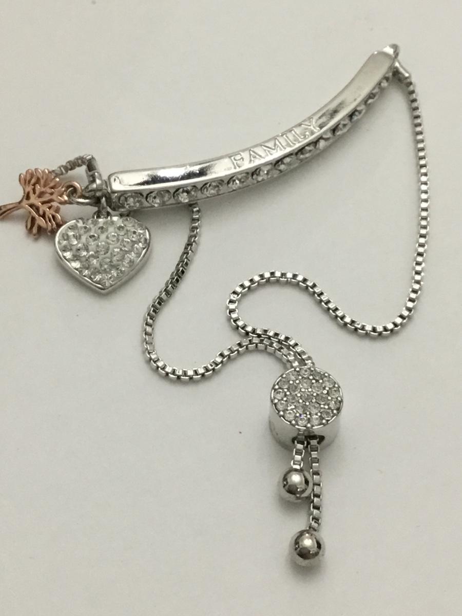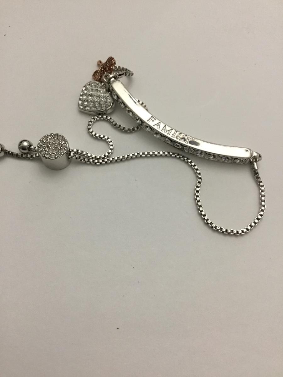Beautiful very nice silver plated, rhinestone family charm slider bracelet