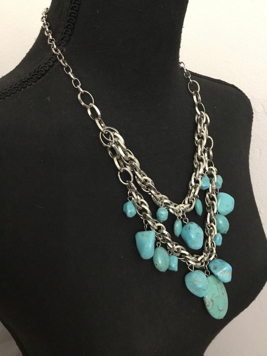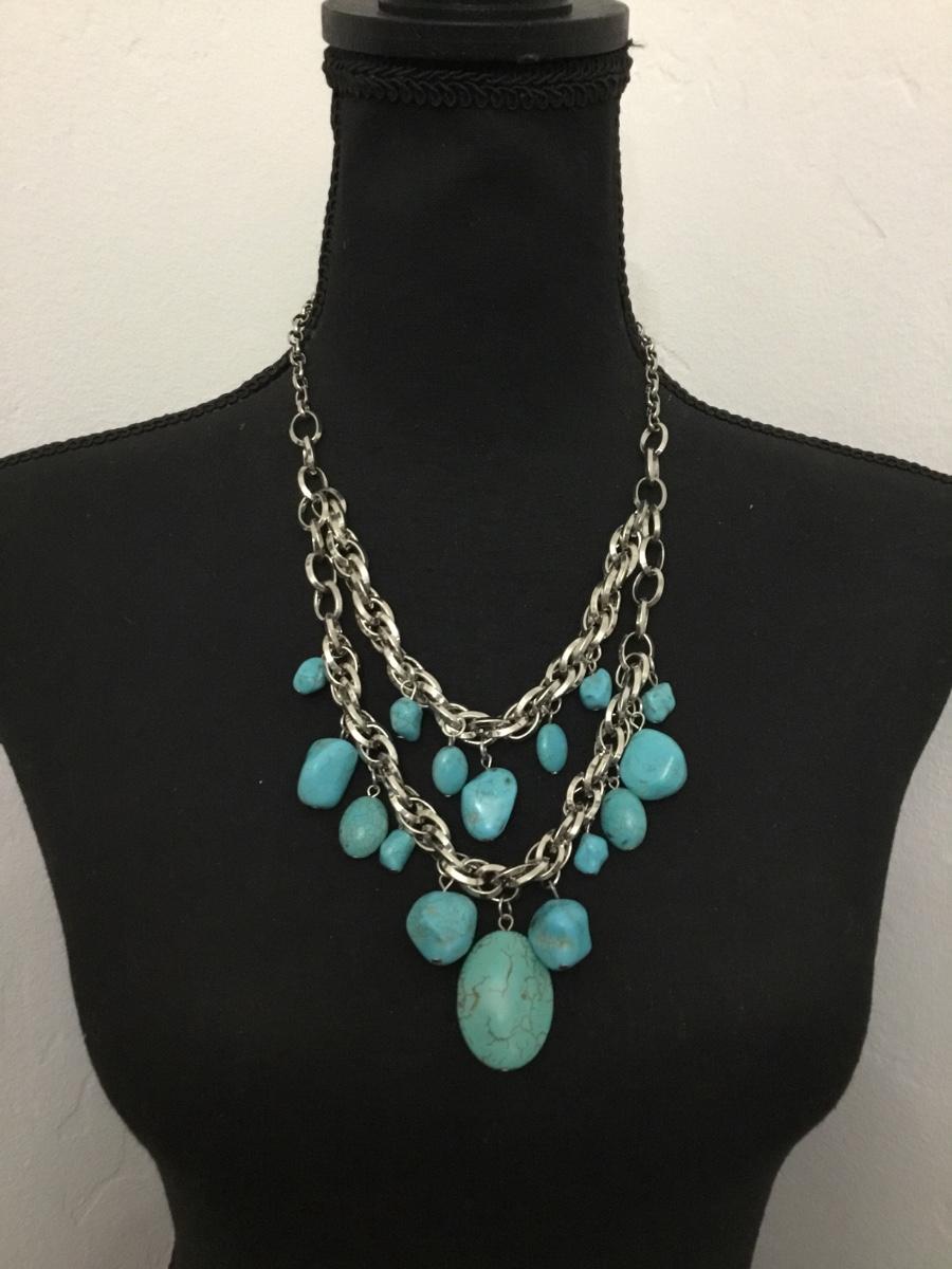 Beautiful very nice silver tone, chain faux, turquoise statement, necklace