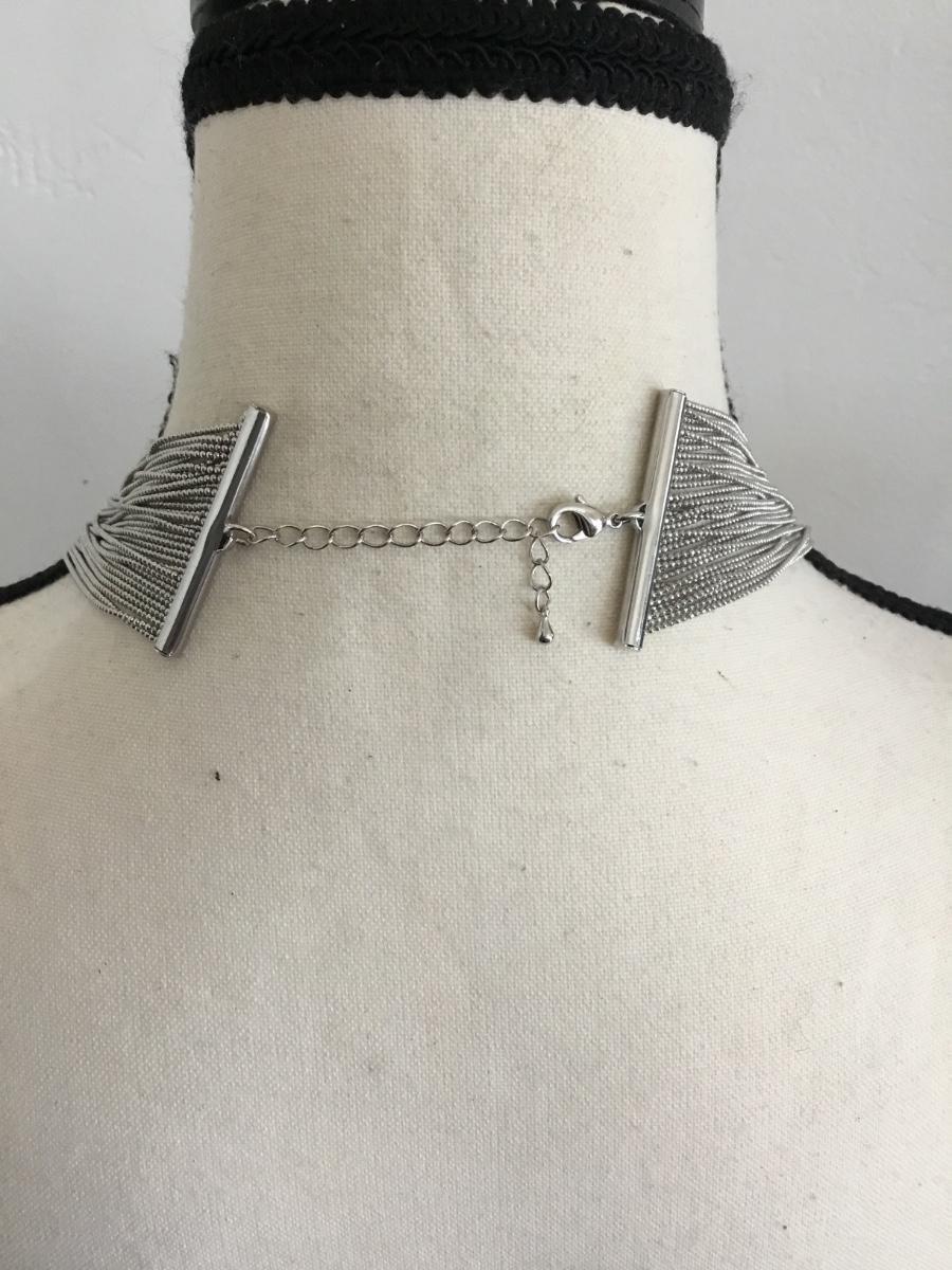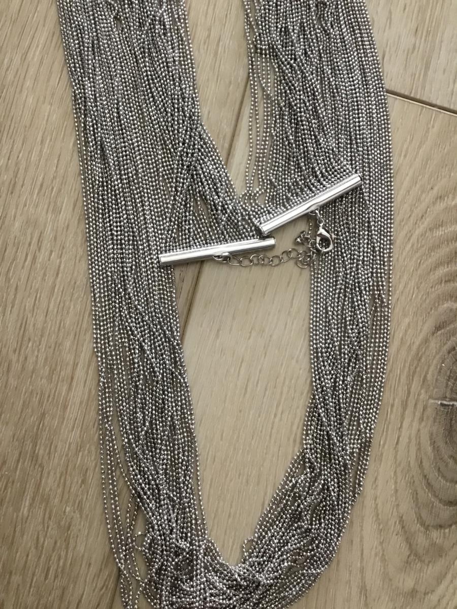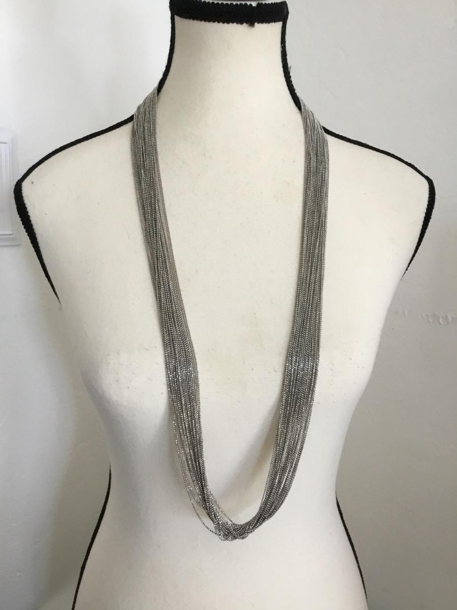 Beautiful very nice silver toned, multi strand, chain statement, necklace