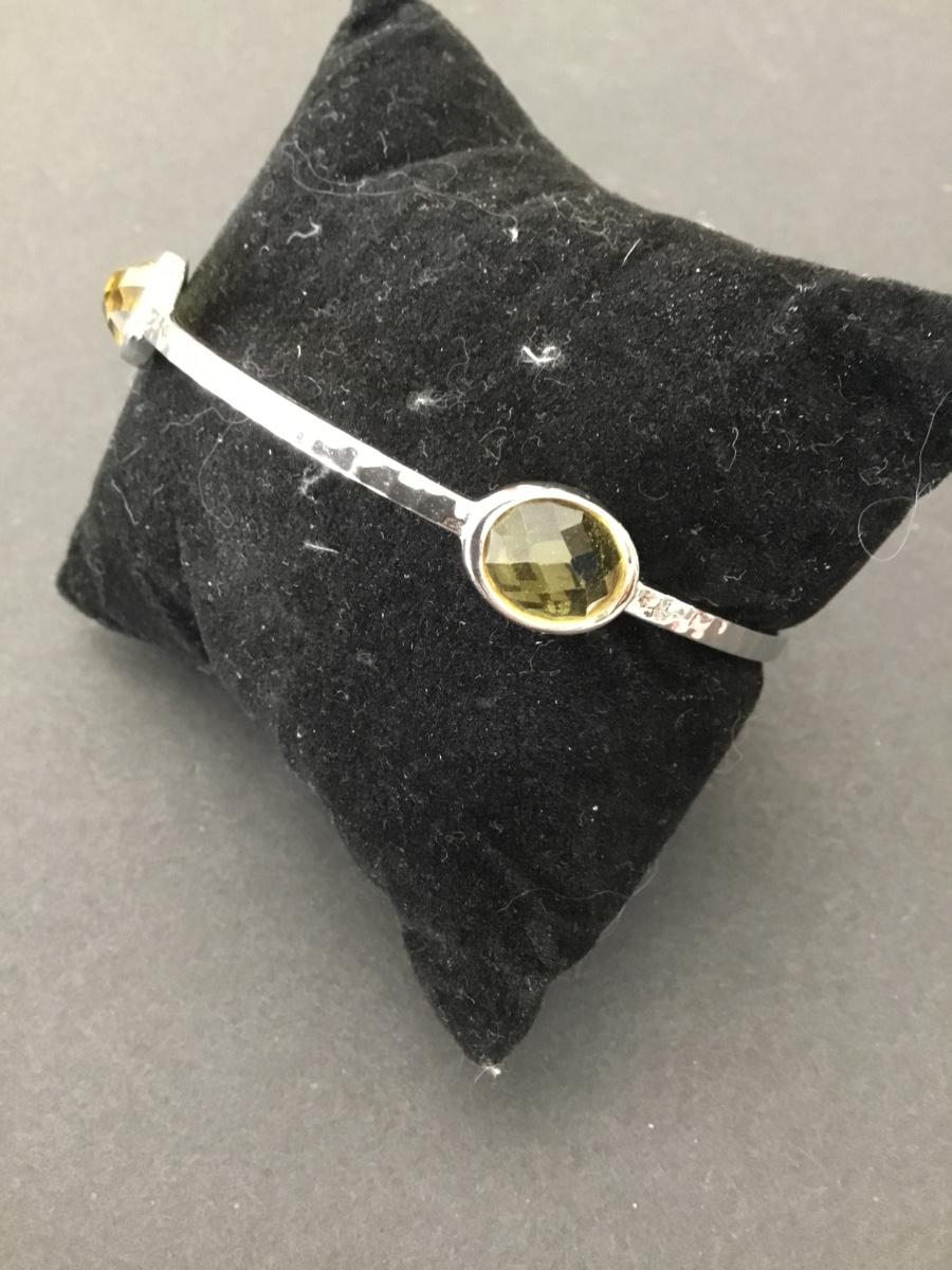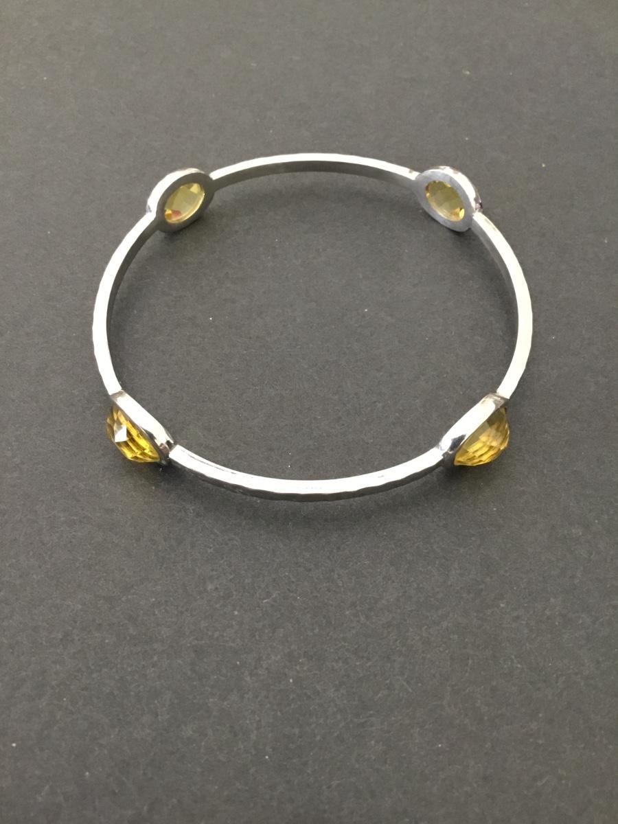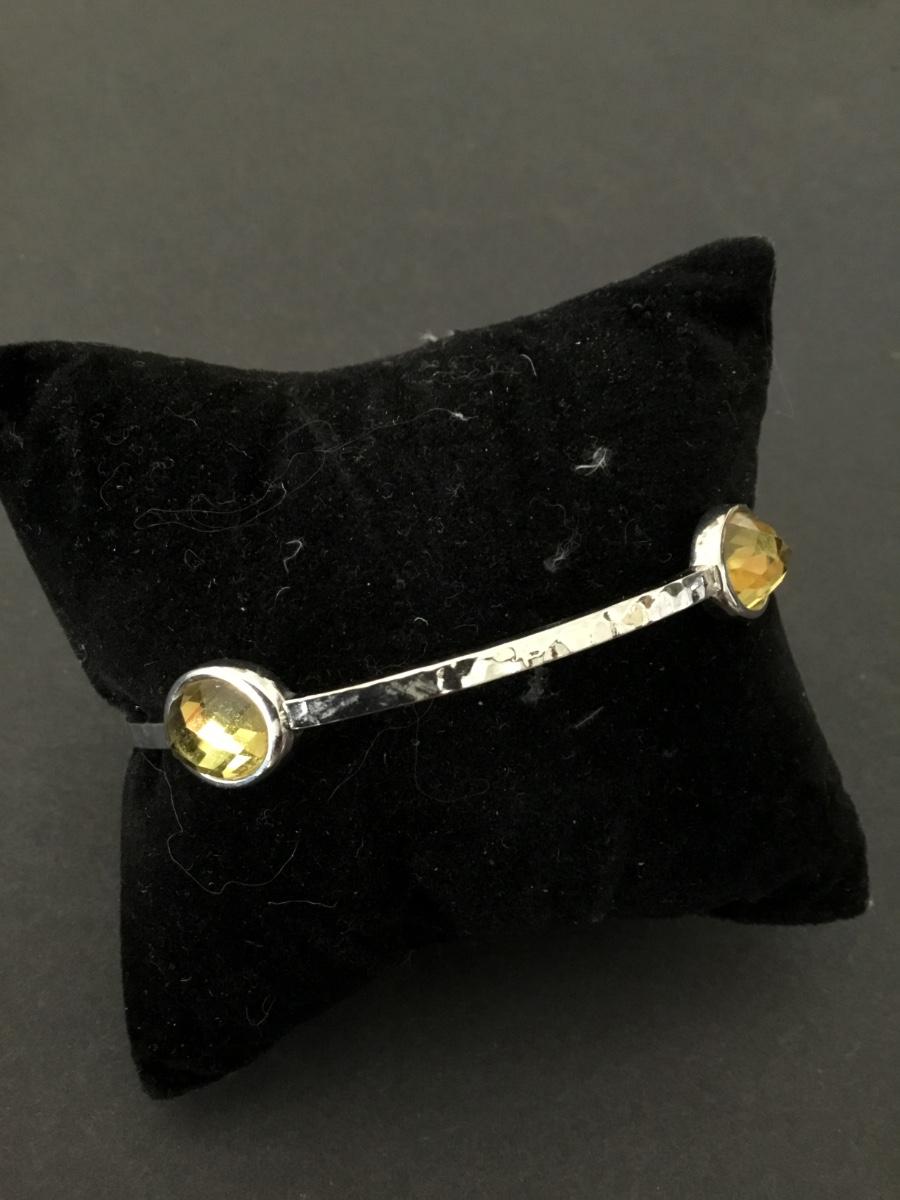 Beautiful very nice silver toned, lemon, yellow, crystal rhinestone bangle bracelet
