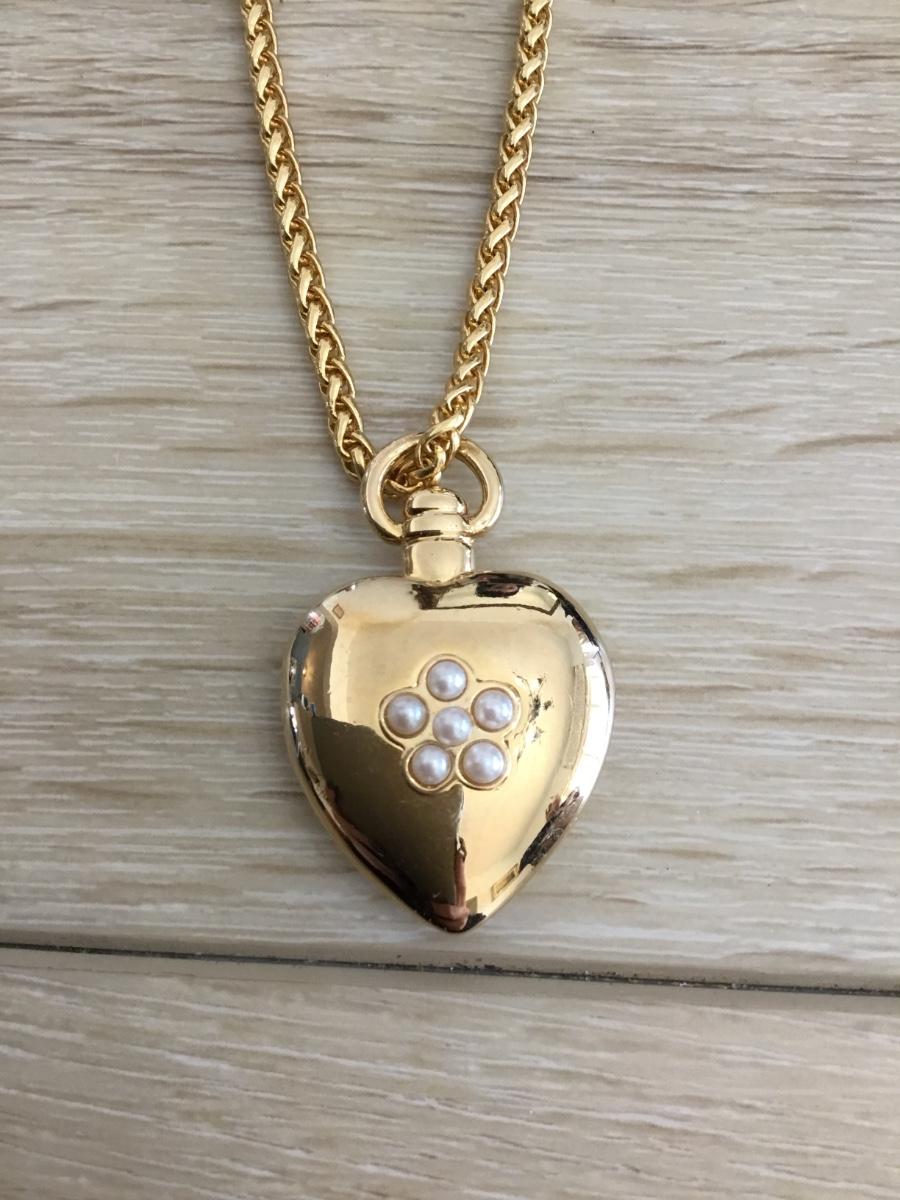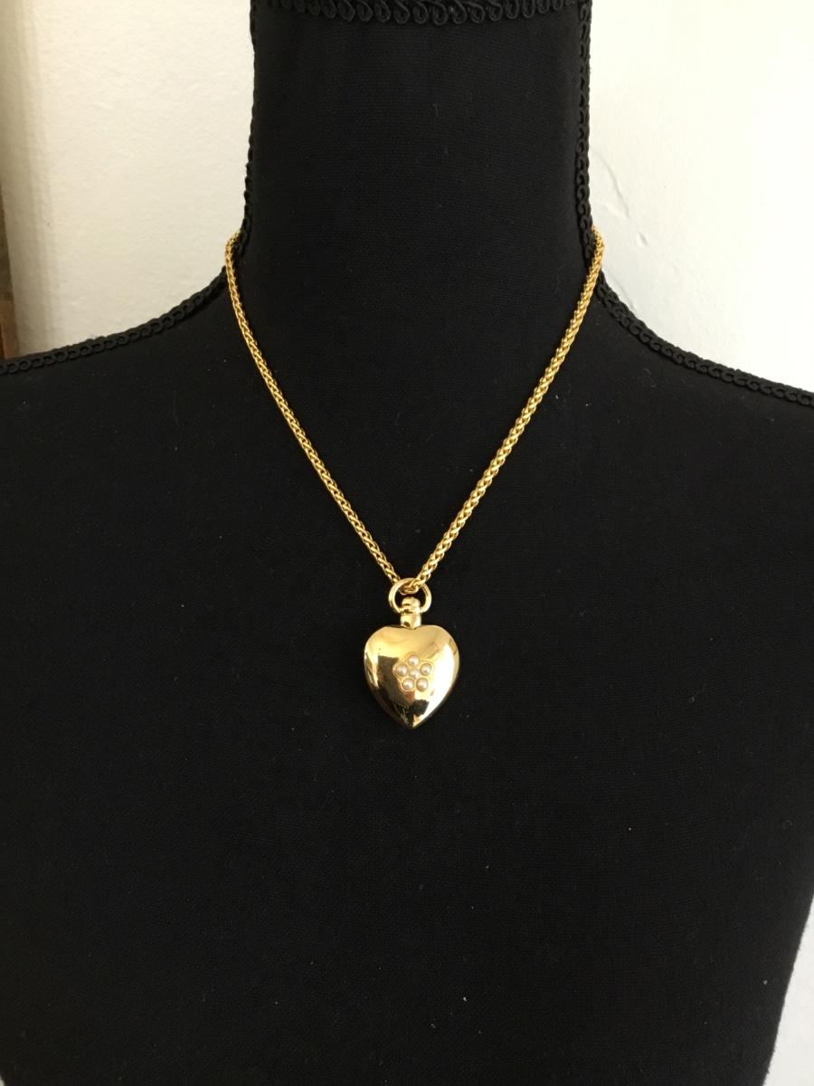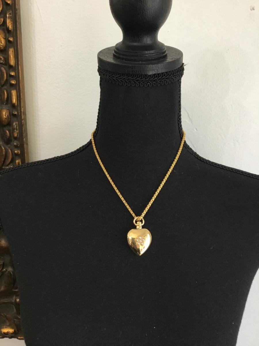 Beautiful very nice thick heavy gold tone heart pendant & chain necklace