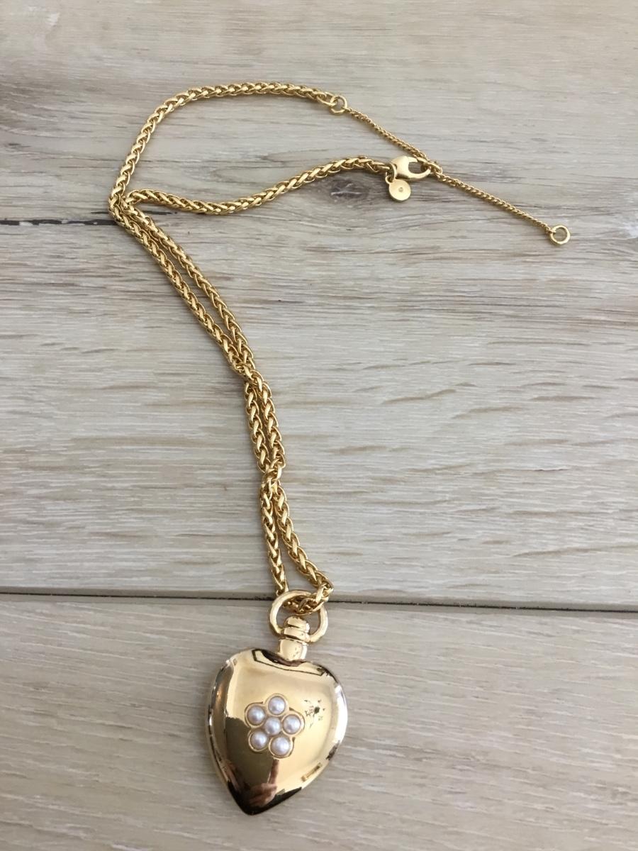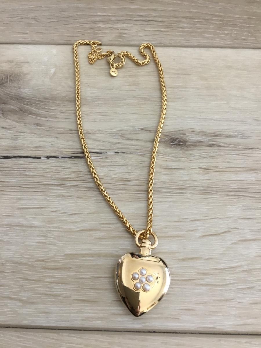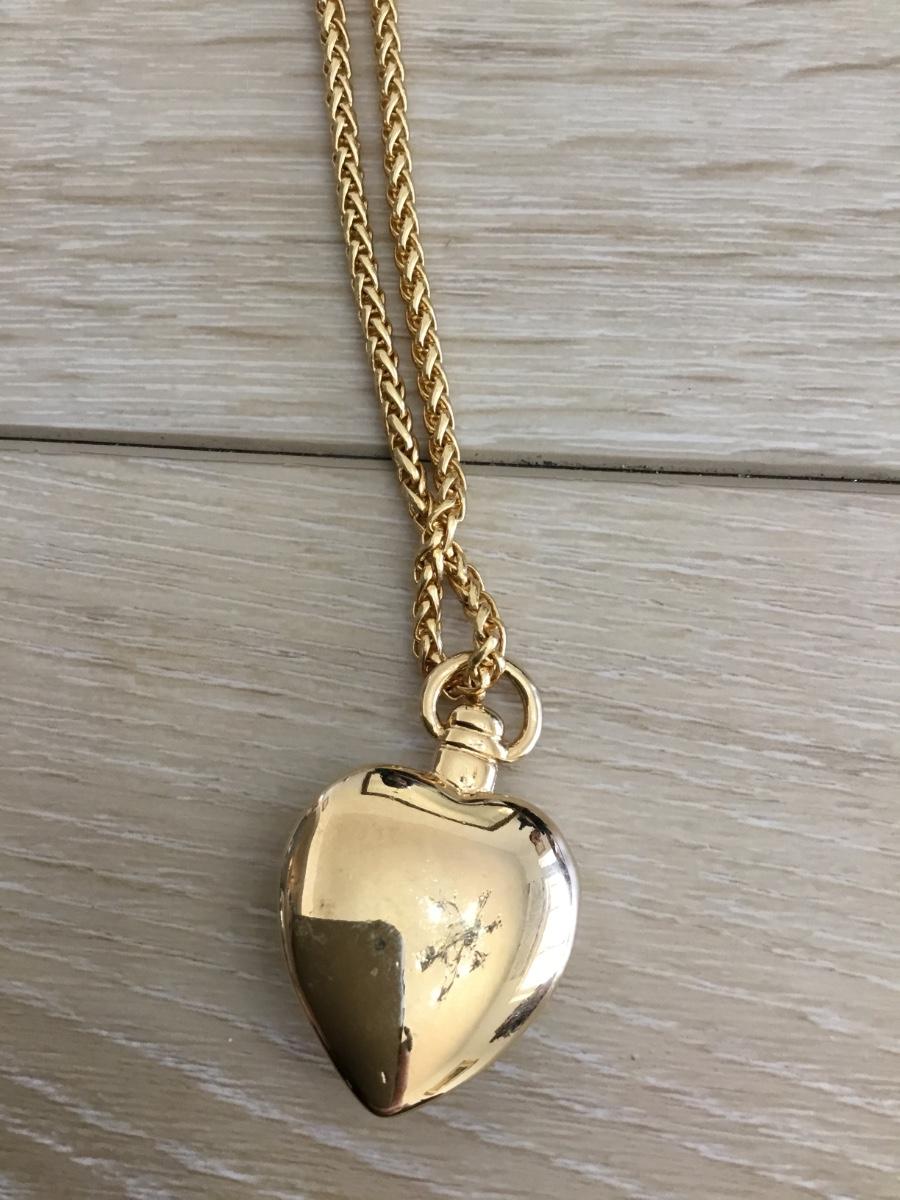 Beautiful very nice thick heavy gold tone heart pendant & chain necklace