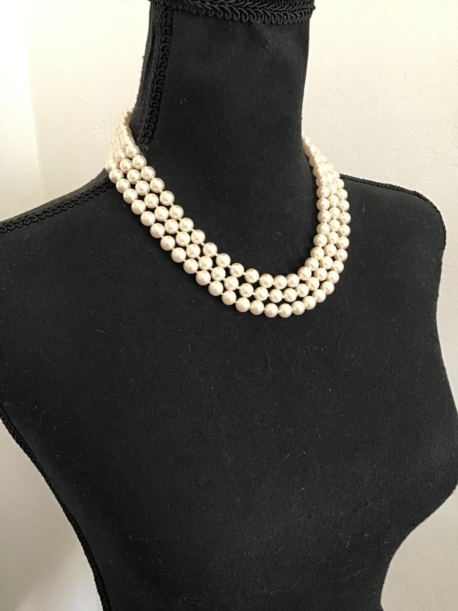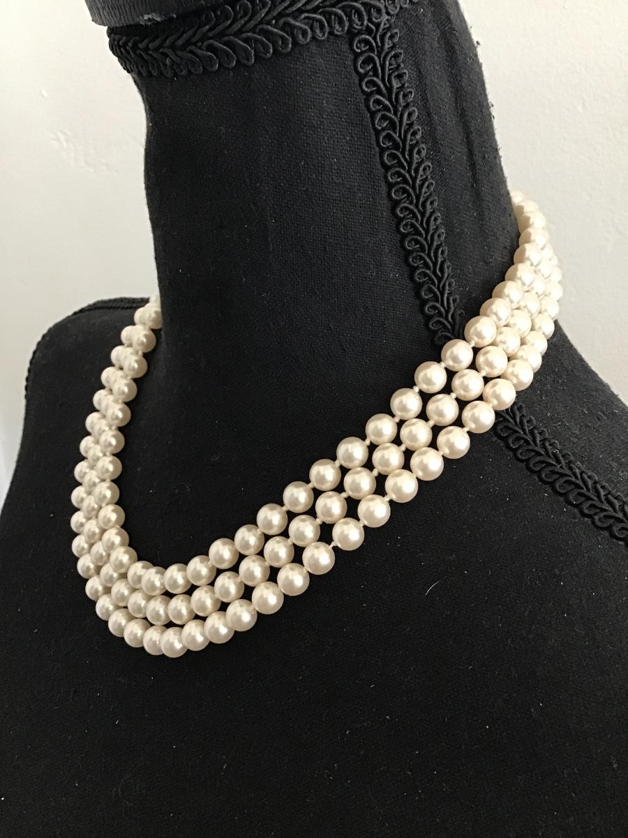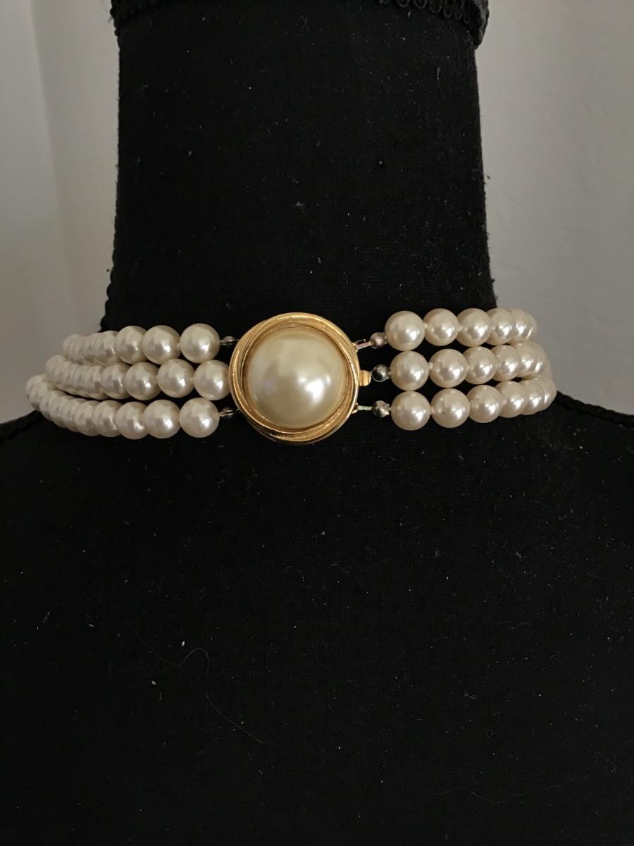 Beautiful very nice vintage faux pearl three strand statement, necklace beautiful clasp