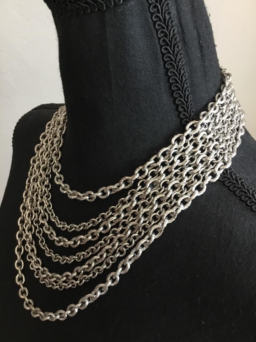 Beautiful very nice White House Black market Silvertone, multi layer, chain statement, necklace