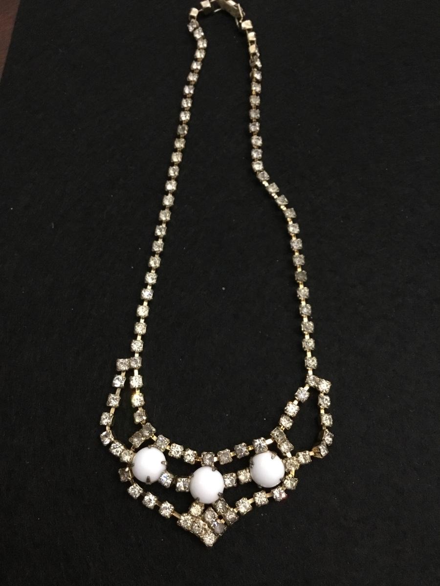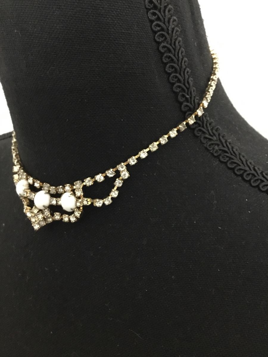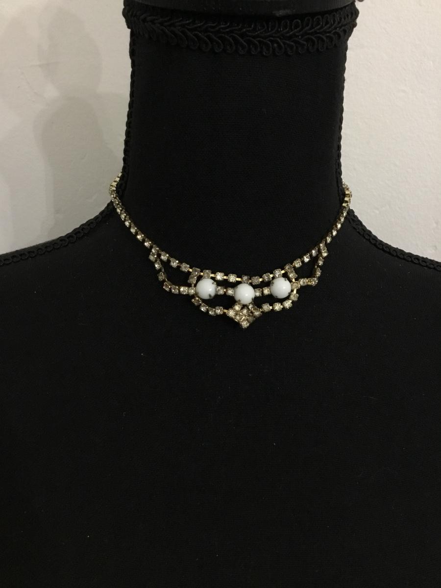 Beautiful Victorian, vintage milk, glass, clear rhinestone choker statement, necklace