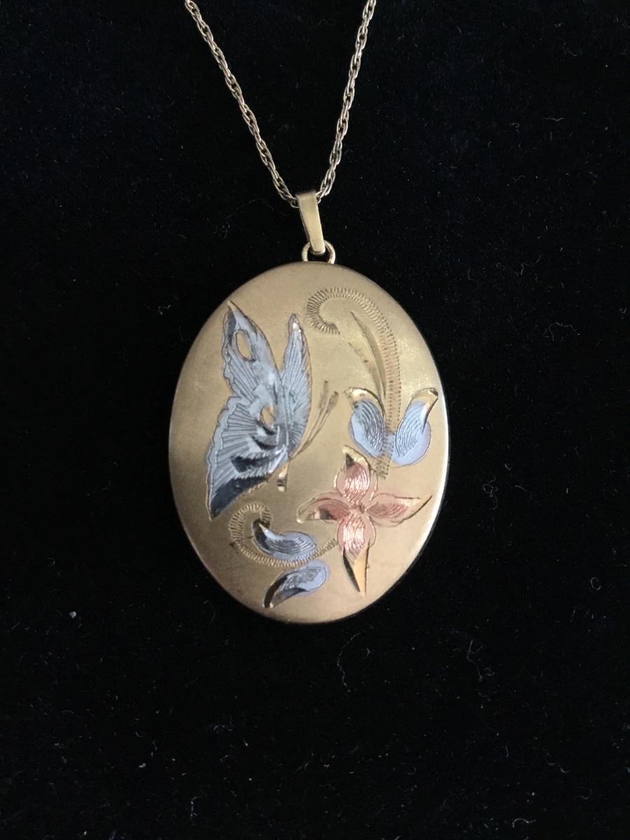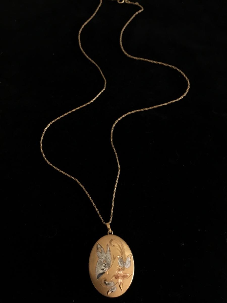 Beautiful vintage, 14 karat gold filled locket and chain necklace