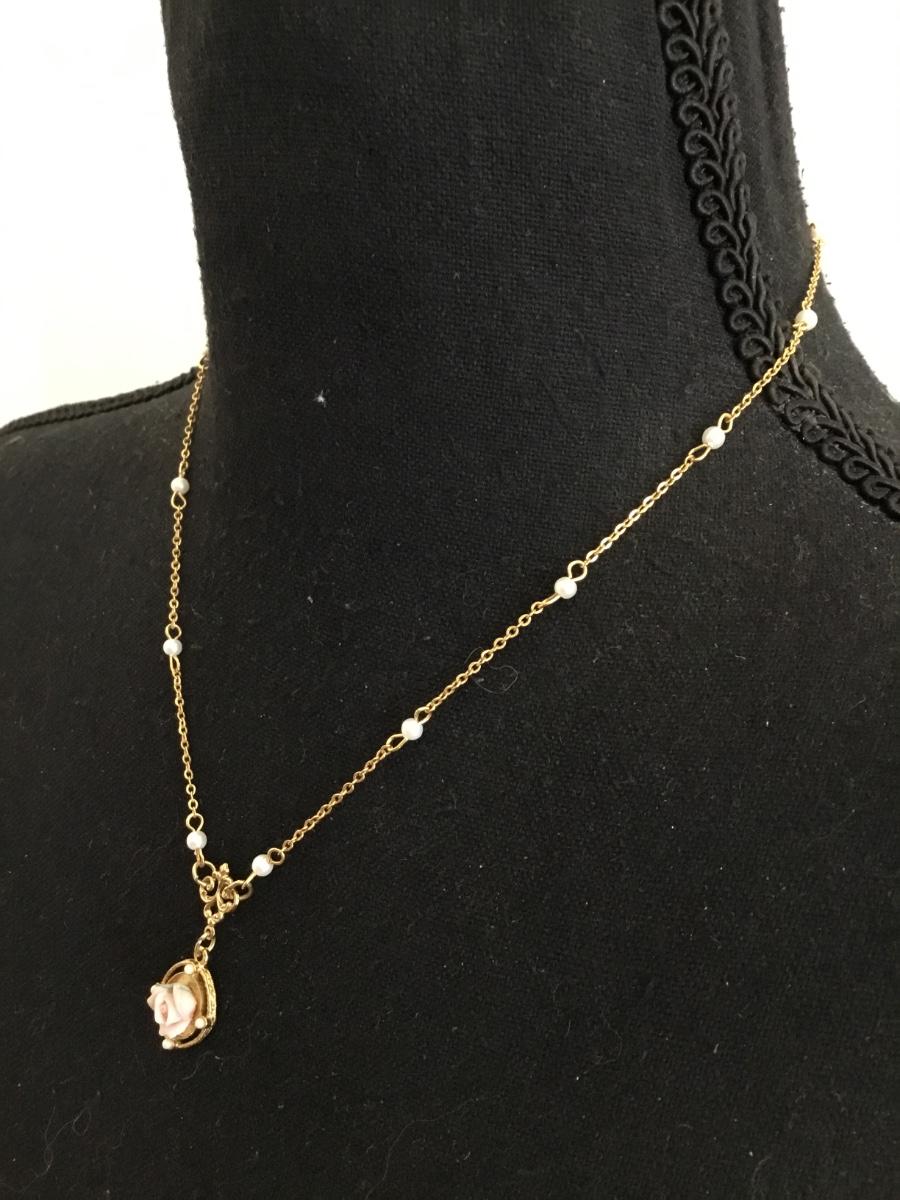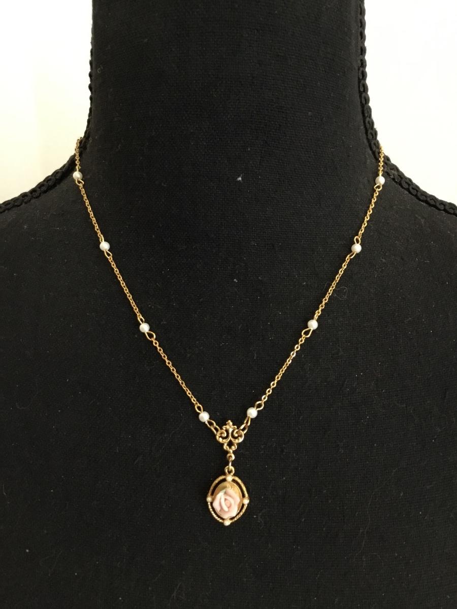 Beautiful vintage 1928 pink porcelain rose necklace. Excellent condition.