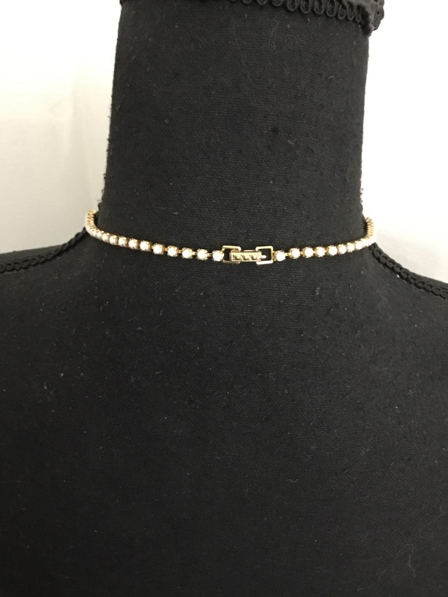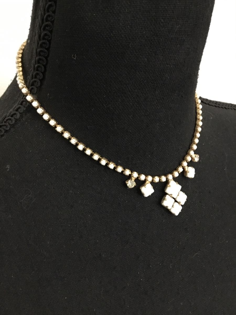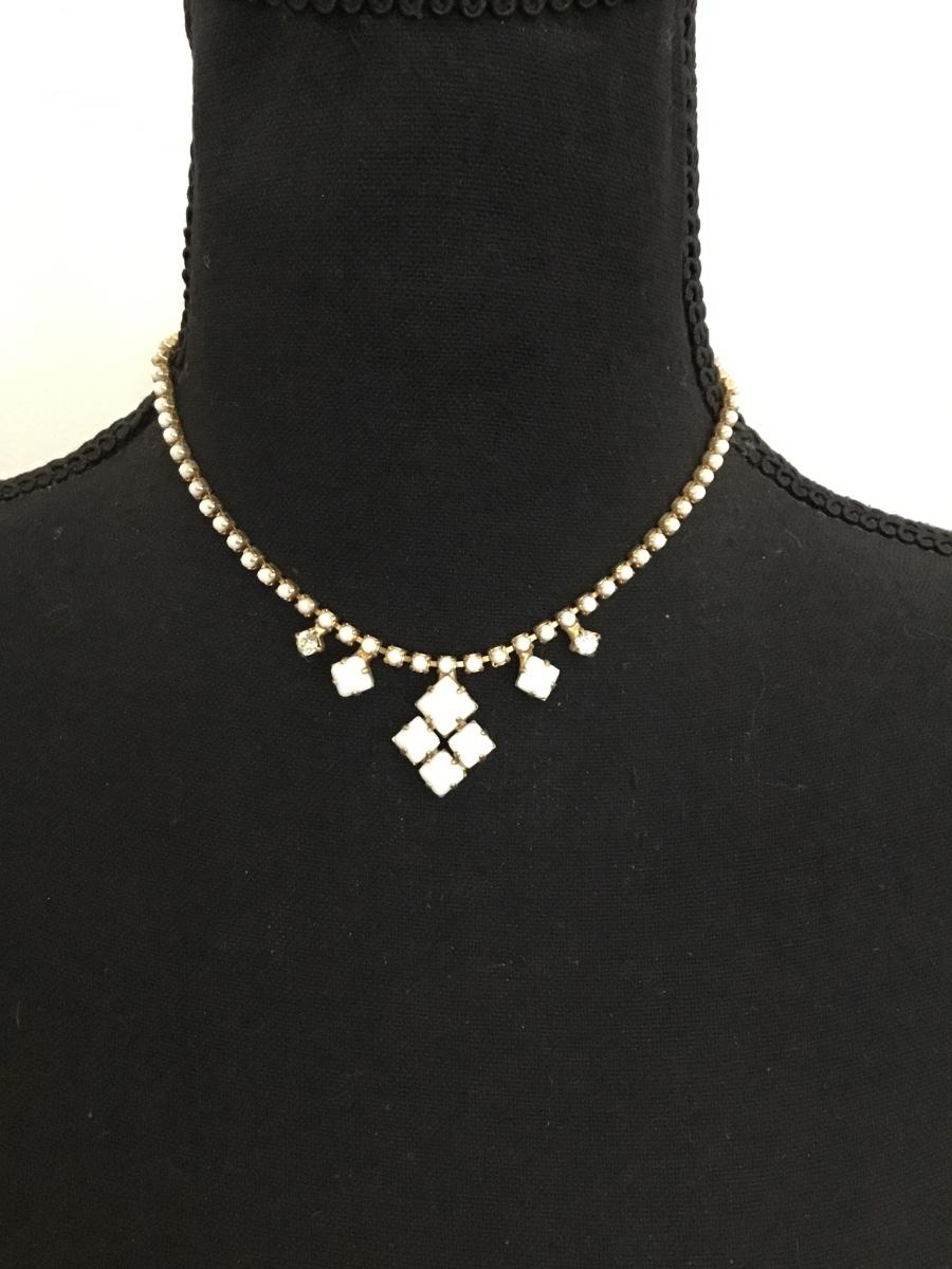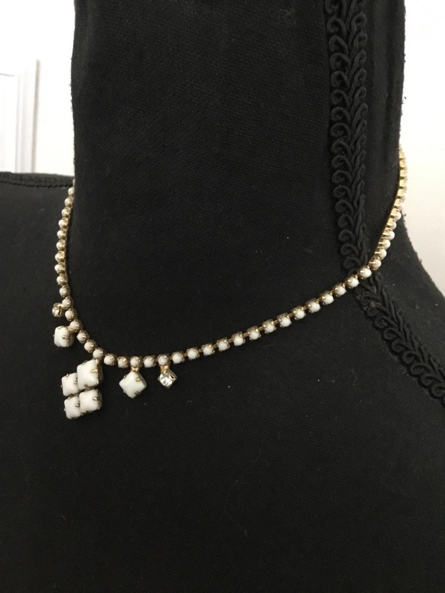 Beautiful vintage 50s white milk, glass and clear rhinestone choker necklace excellent condition