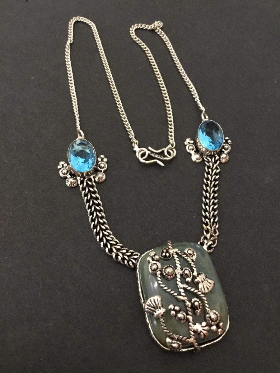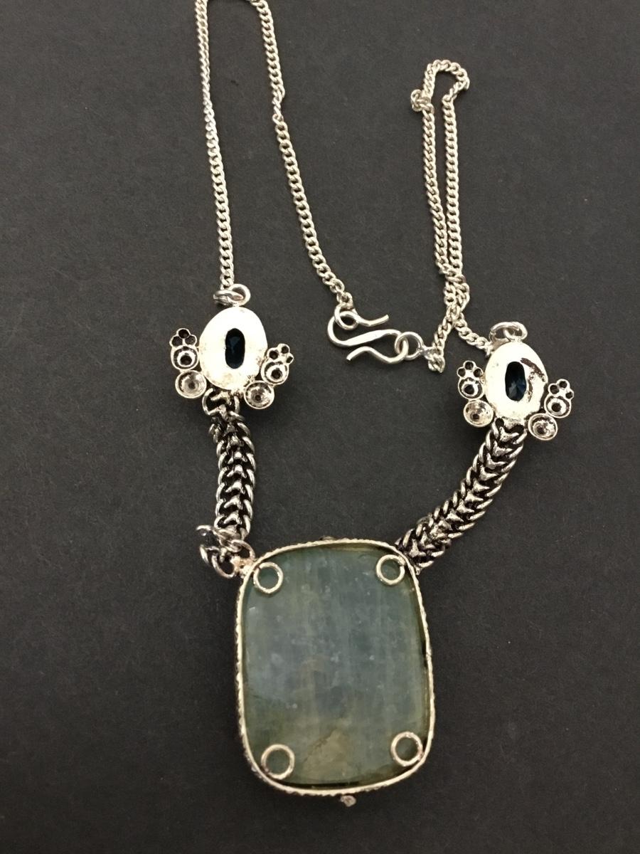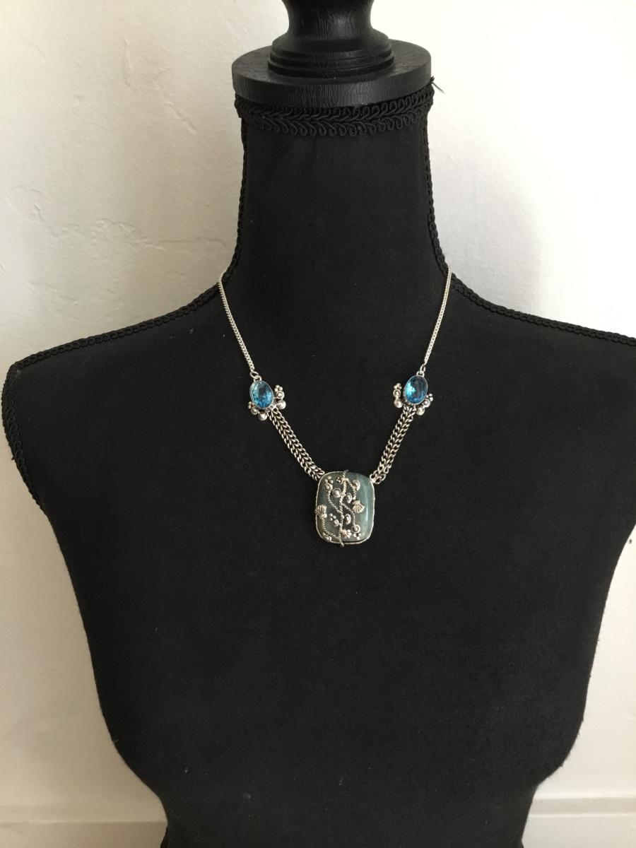 Beautiful vintage, 925 sterling silver Azurite and Topaz necklace