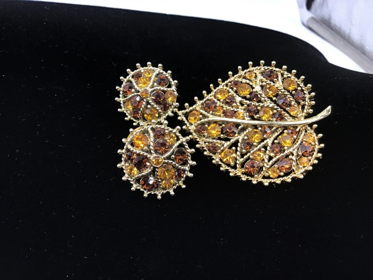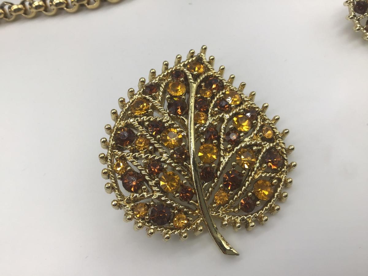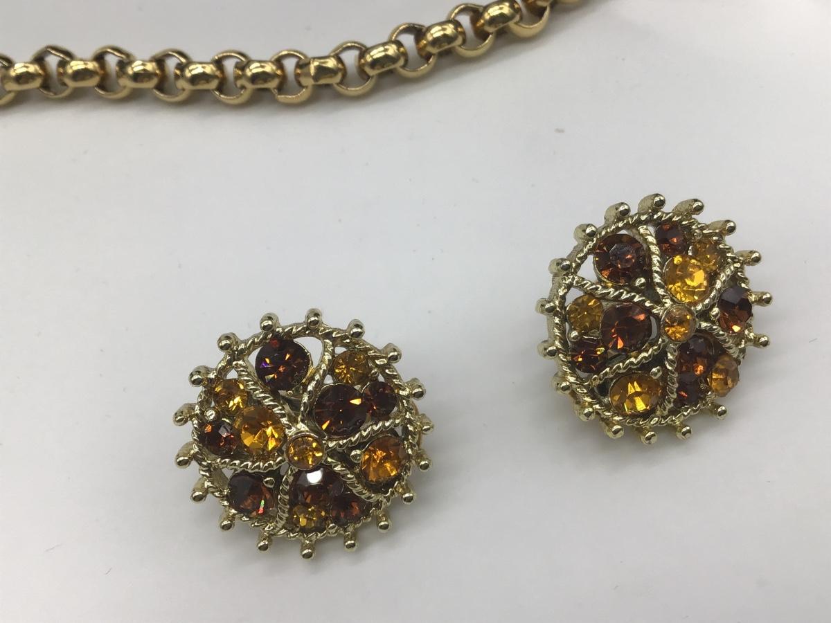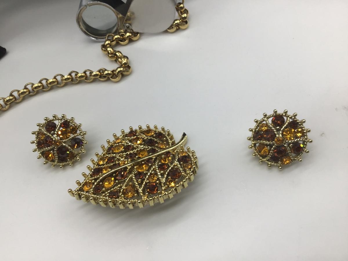 Beautiful Vintage Amber And Yellow Rhinestone Brooch and Matching Earrings