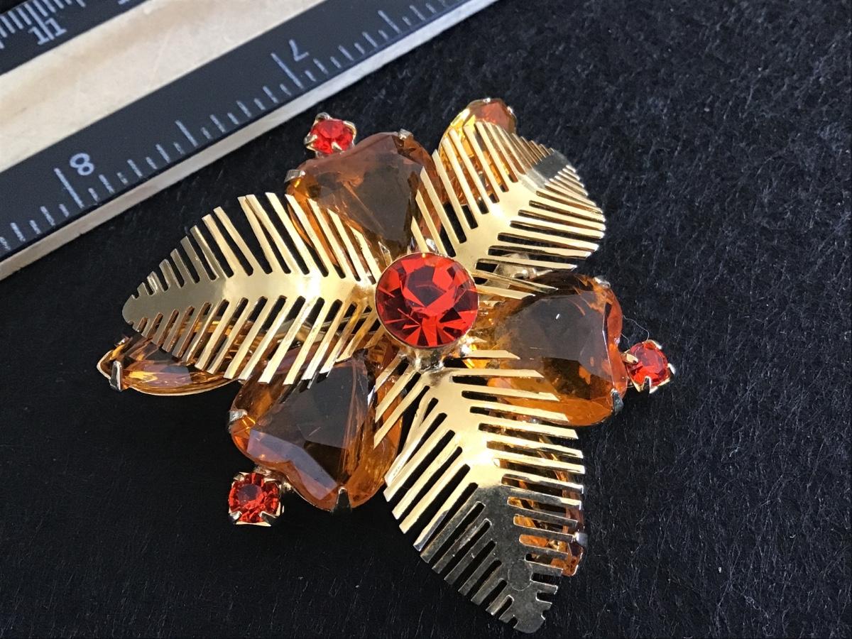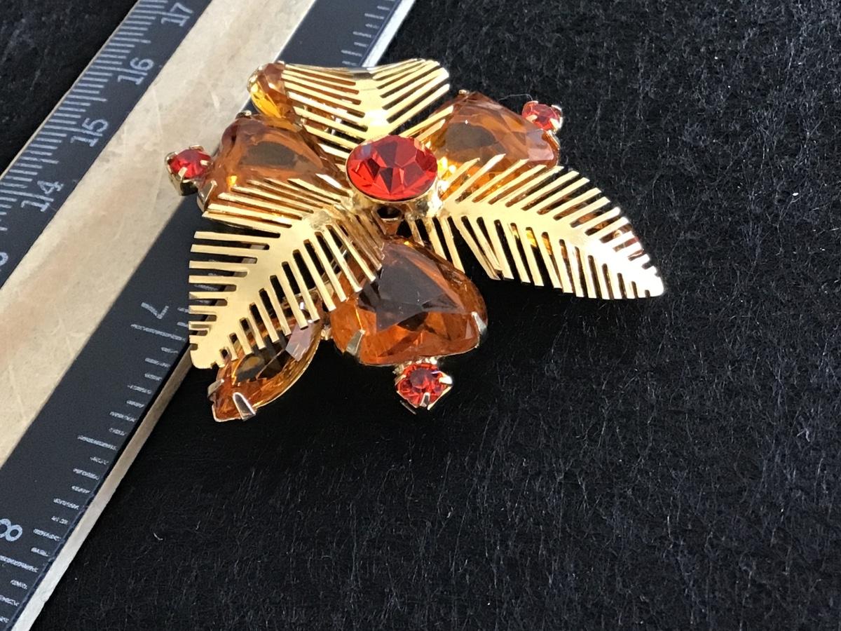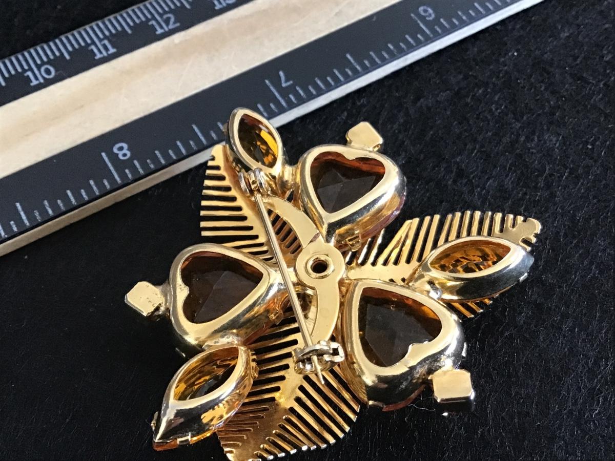 Beautiful Vintage Amber Citrine Color Gold Tone Leafy