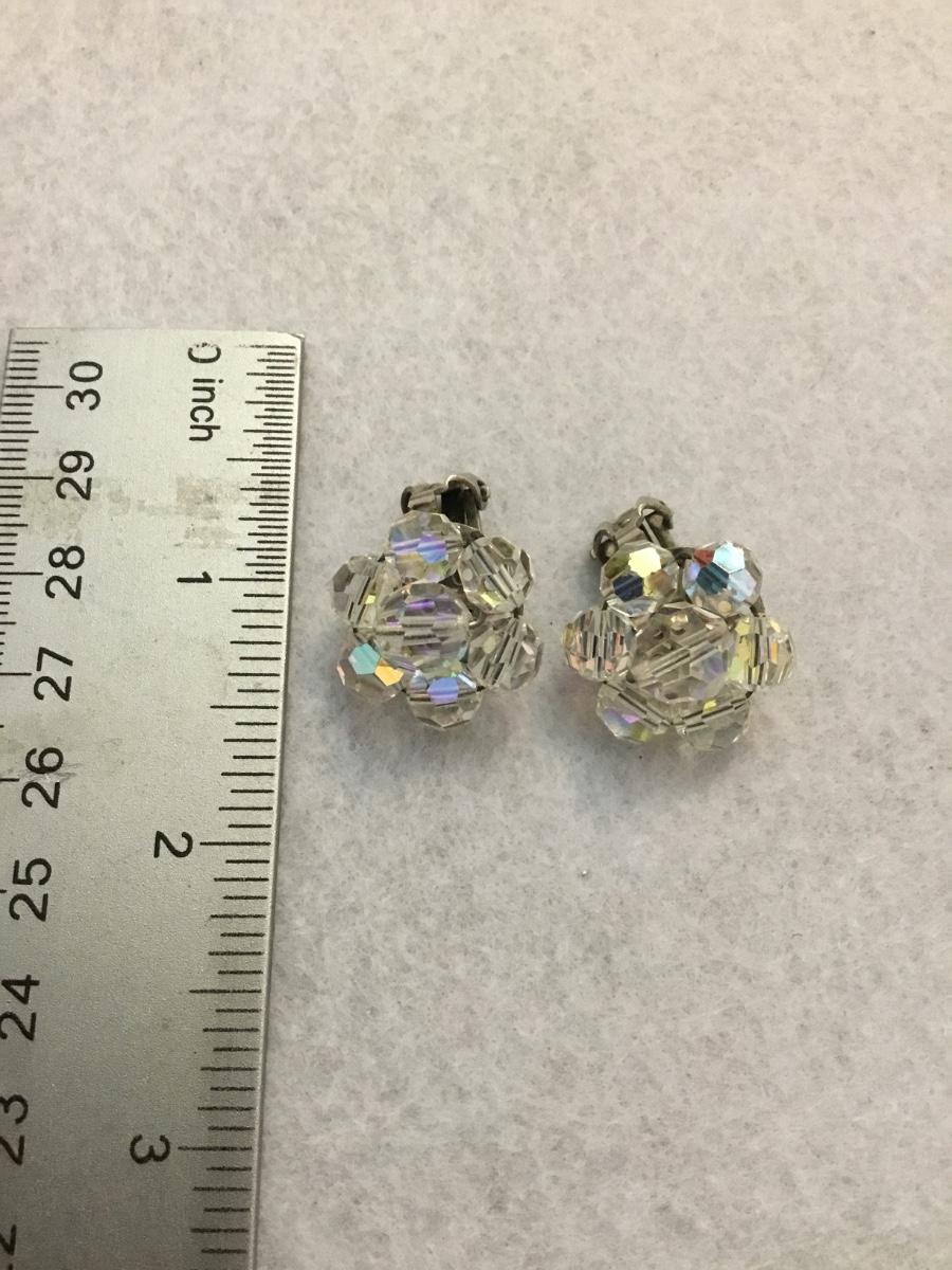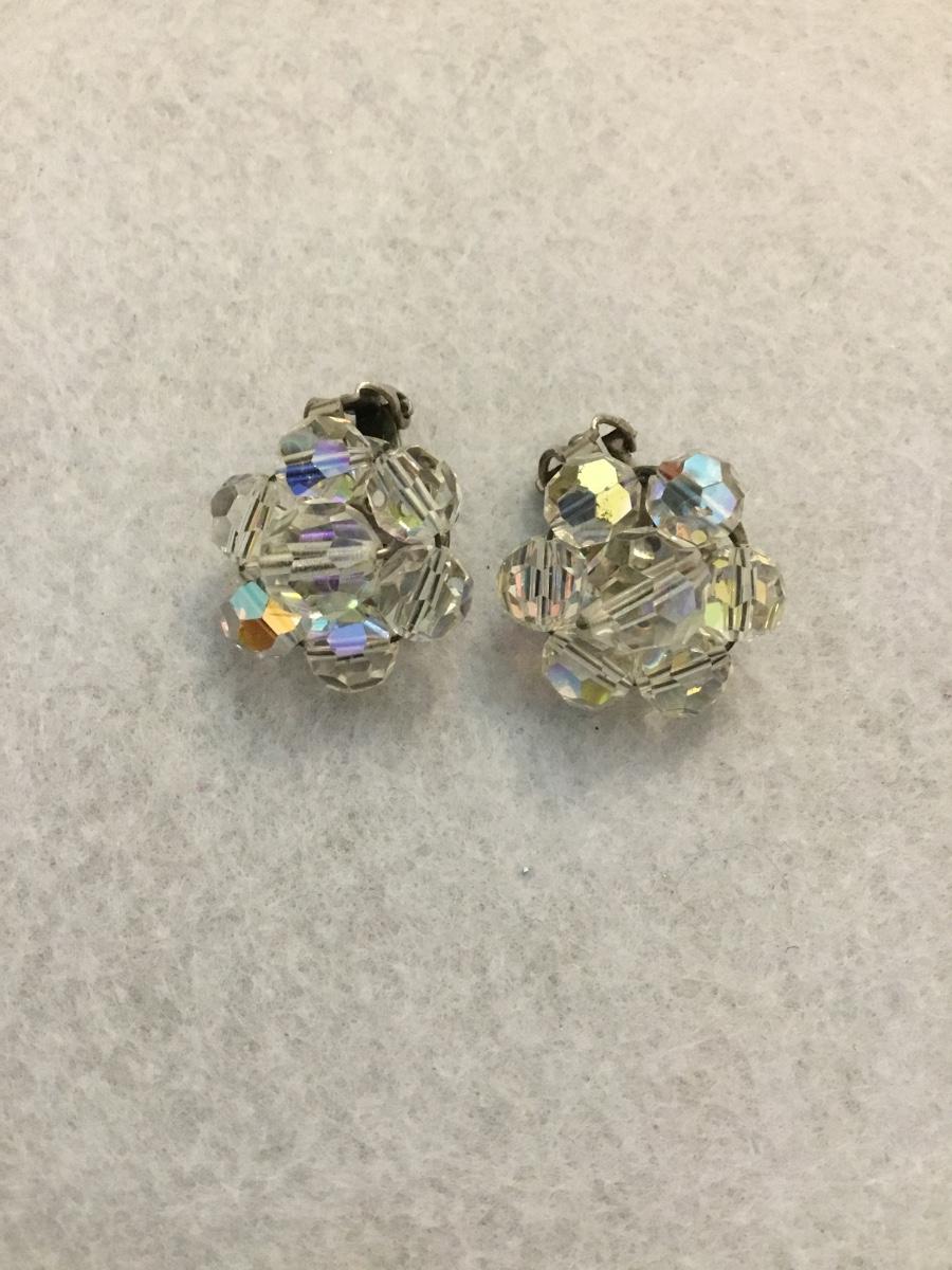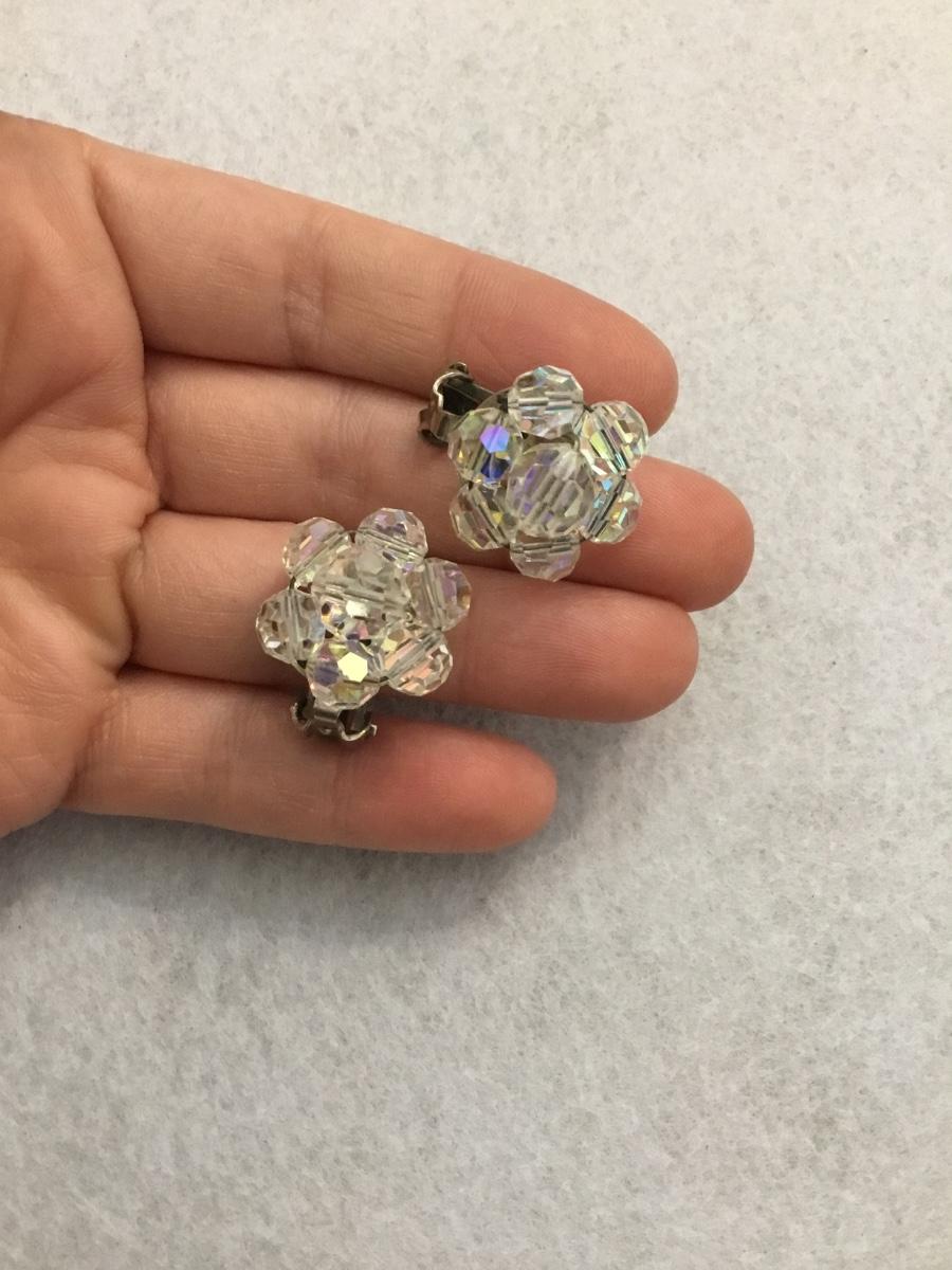 Beautiful vintage Aurora Borealis crystal flower clip on earrings