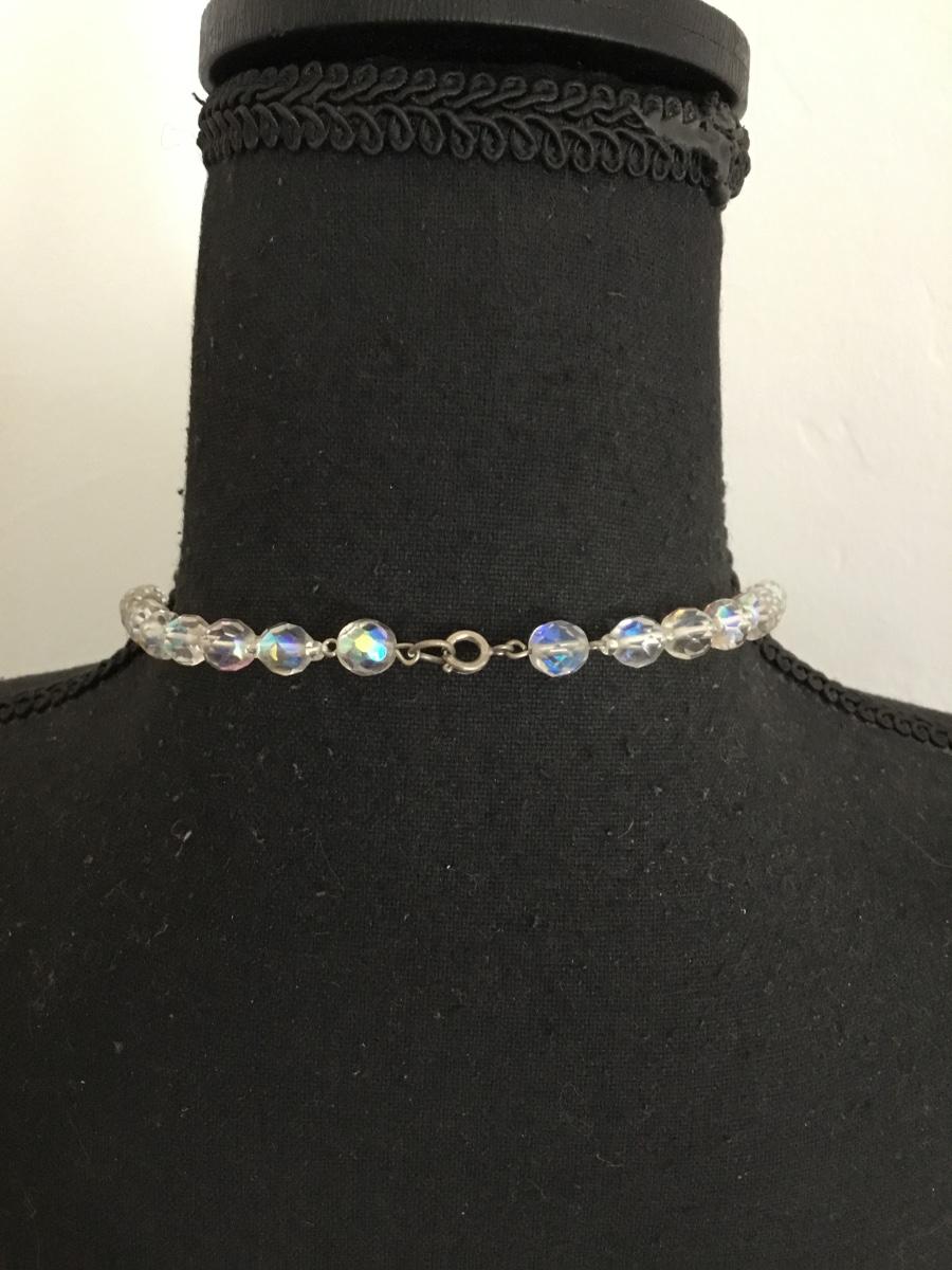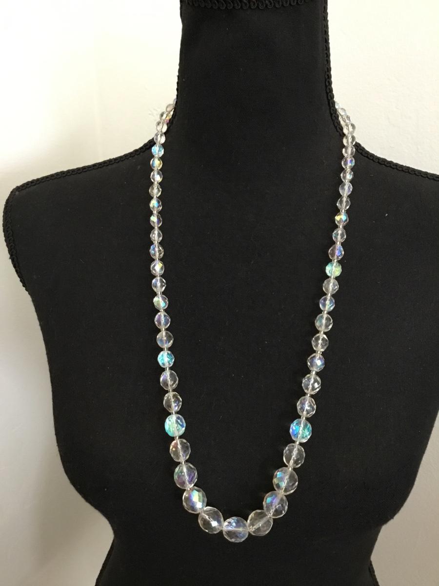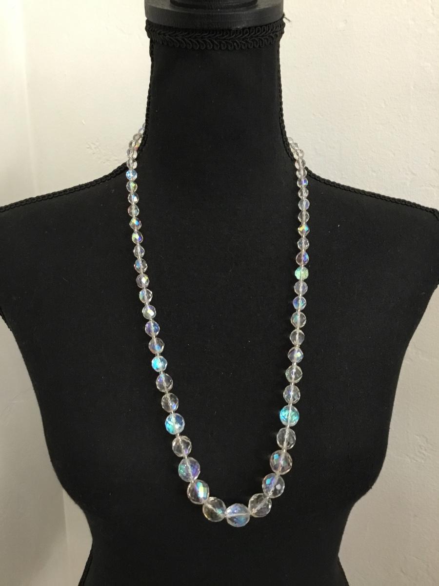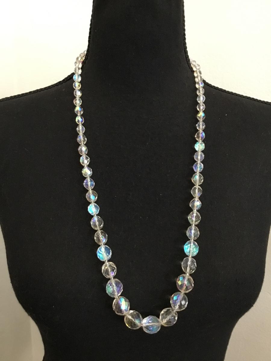 Beautiful vintage, Aurora Borealis faceted round crystal bead necklace